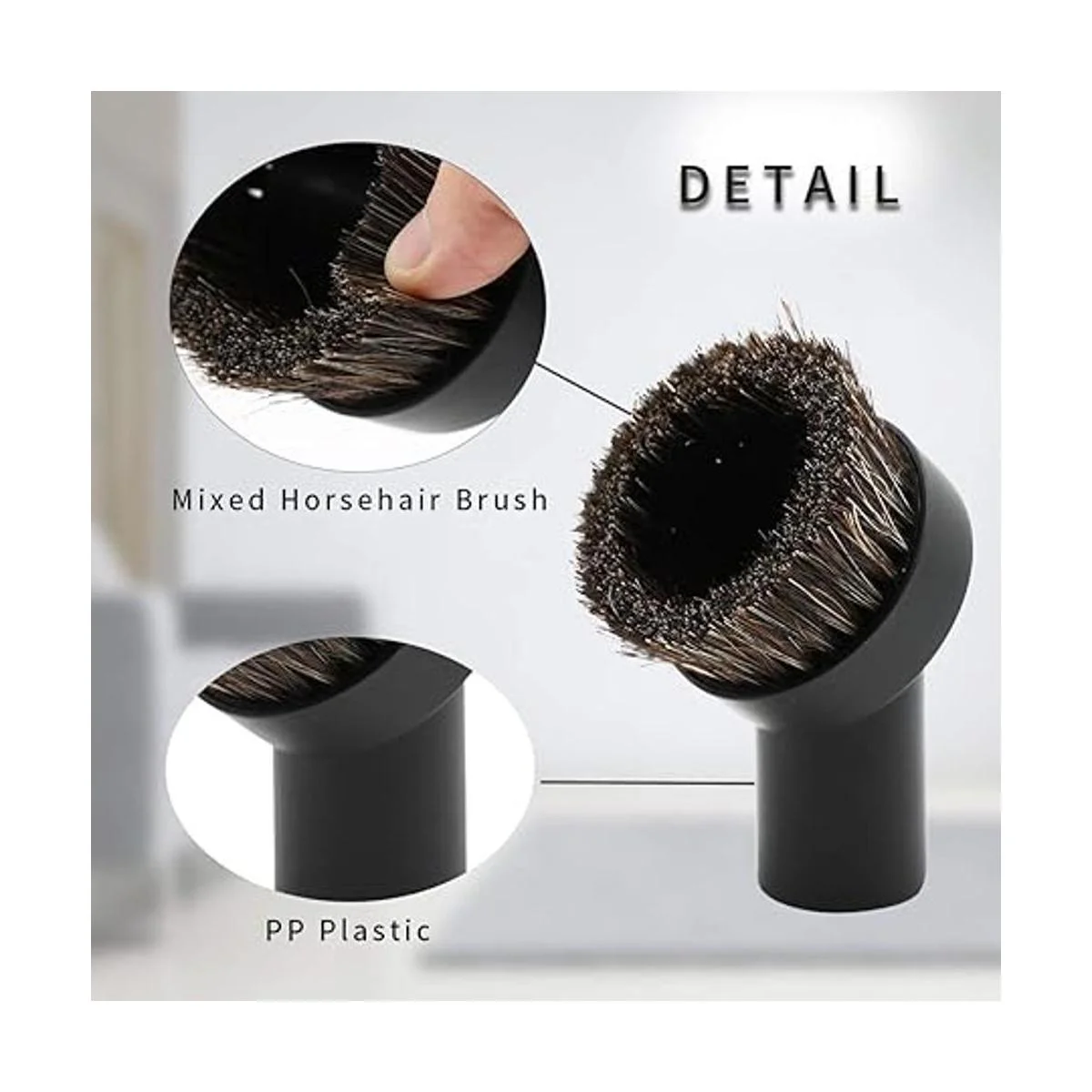 Gran material: pelo de caballo mixto, gran material para herramientas de aspiradora. El cepillo redondo de pelo de caballo mixto puede llegar a lugares estrechos sin rayar