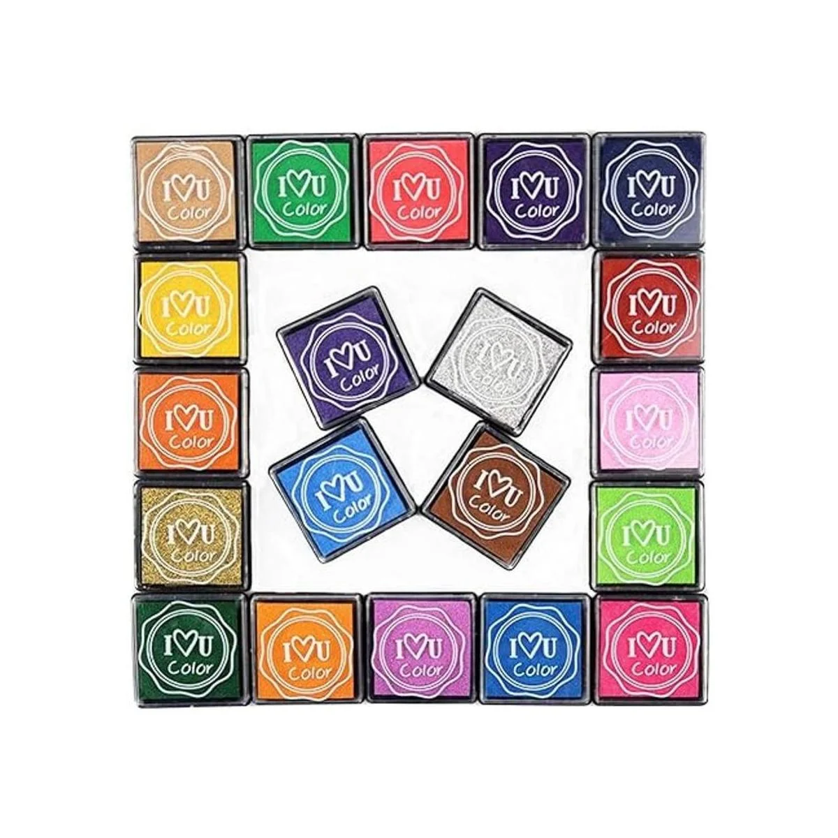 La almohadilla de tinta para sello infantil con 20 colores diferentes, y cada tamaño es de 1.57 x 1.57 x 0.43 pulgadas. Varios colores permiten que los niños usen su imaginación, creando una gran pintura de dedos.