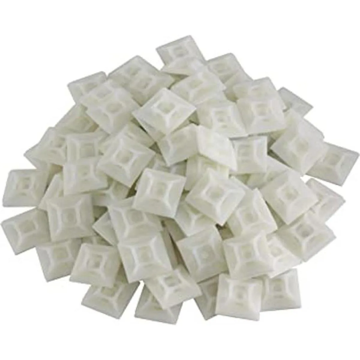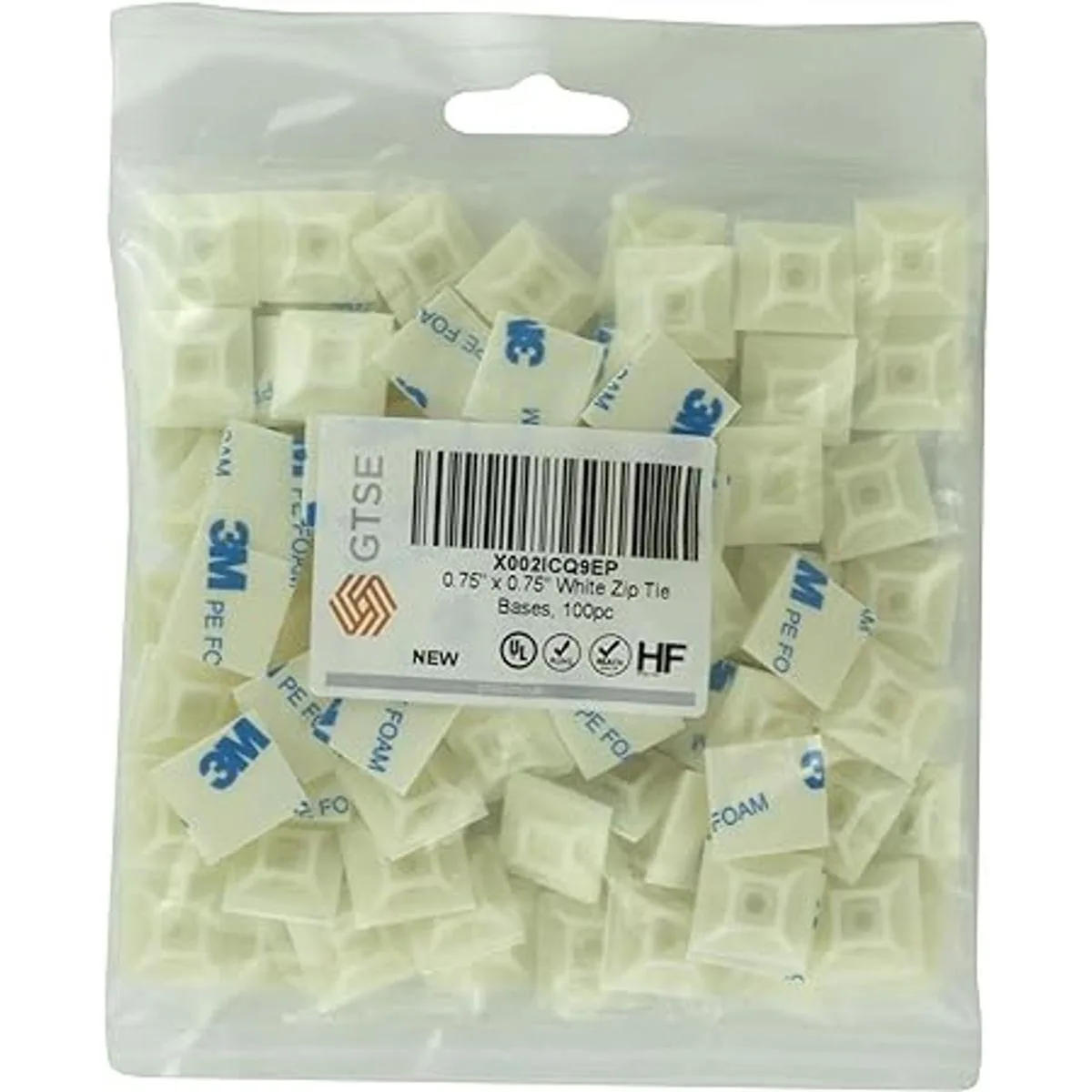 GTSE Paquete de 100 soportes blancos para bridas con cremallera, cuadrados de montaje adhesivos de 34 pulgadas, soporte para bridas de cables, anclaje para bridas de cables, bases resistentes a los rayos UV
