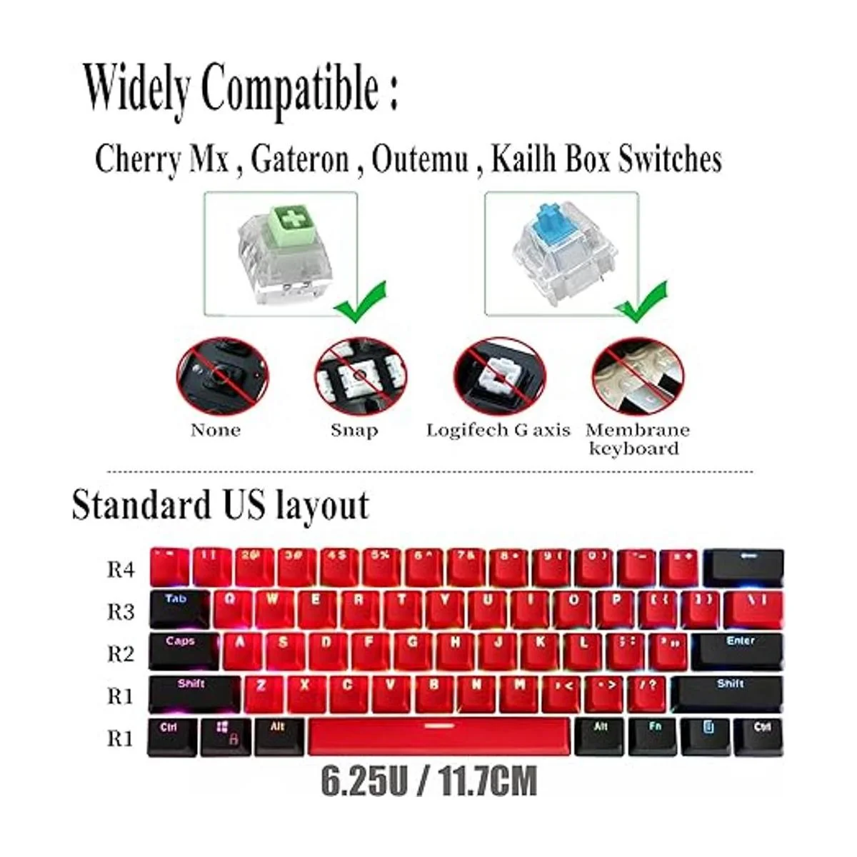 Teclas de Guffercty kred aptas para la mayoría de teclados mecánicos de 61 teclas GH60/PK 61/ALT 61/Anne Pro 2/Ducky One 2 mini y todos los otros teclados Cherry MX Switch