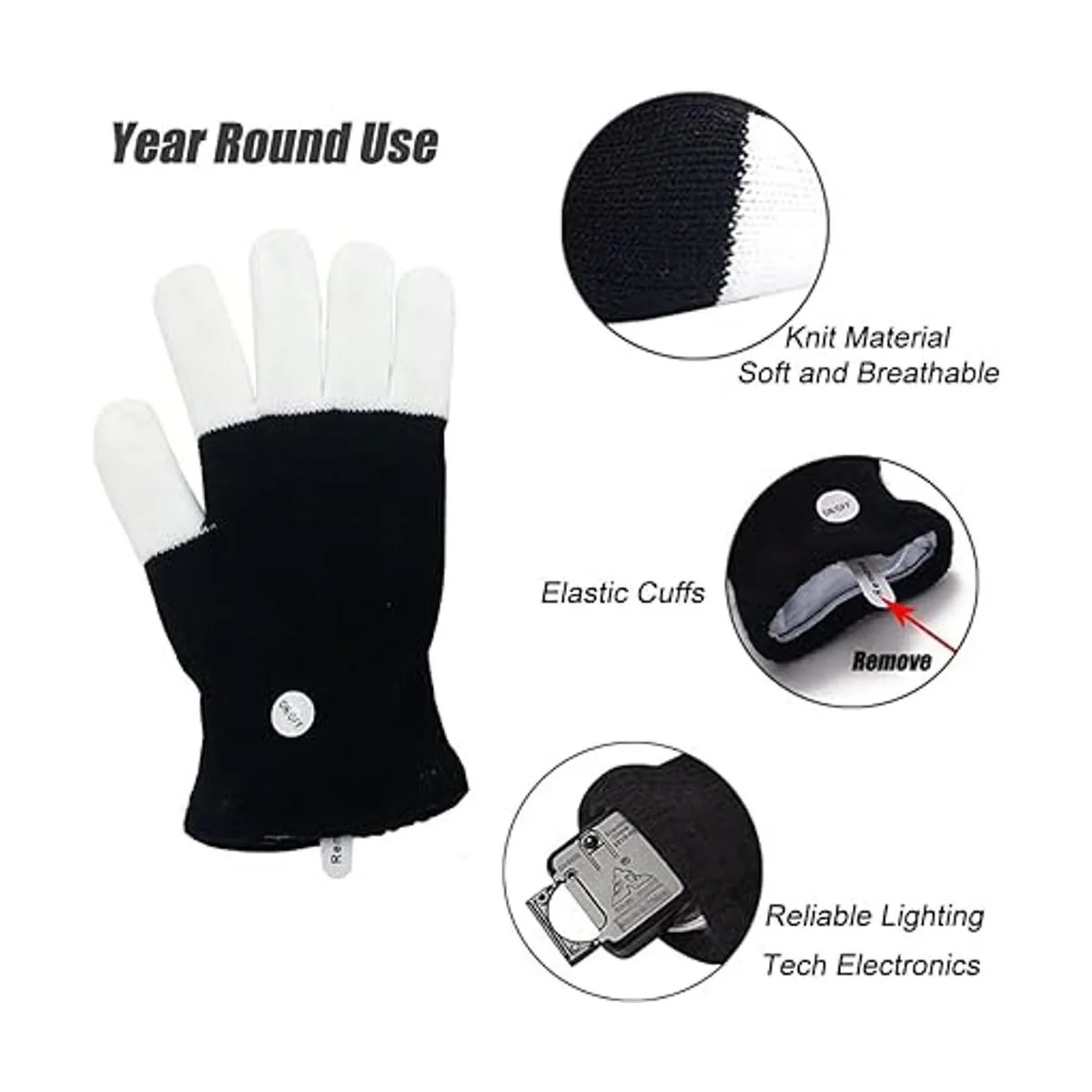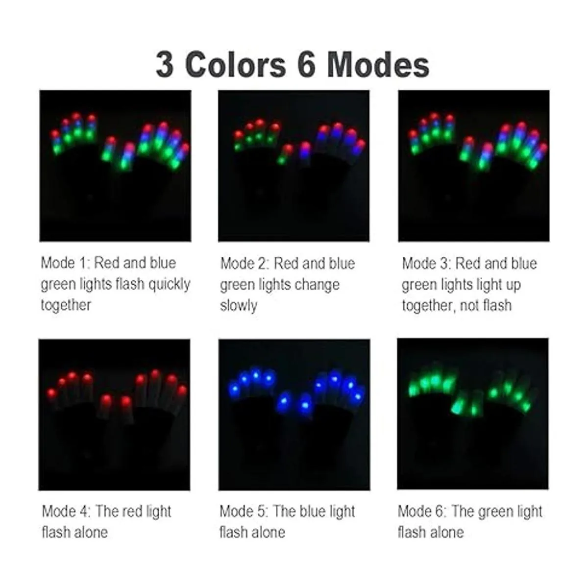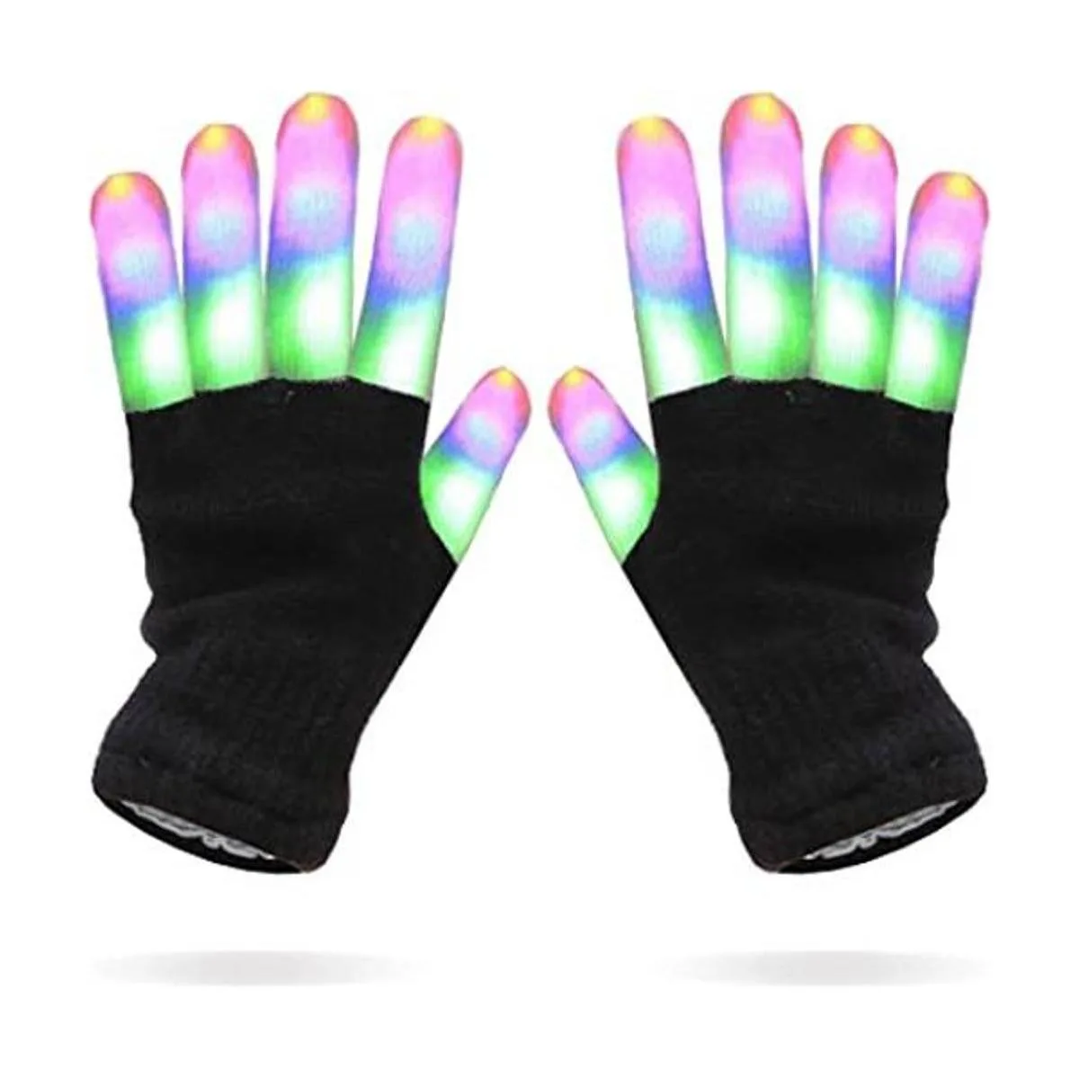 Guantes con luces intermitentes con 6 modos de iluminación y 7 colores de luces LED. Los ajustes de diferentes colores y los patrones de luz se ejecutan al presionar el botón en la muñeca.