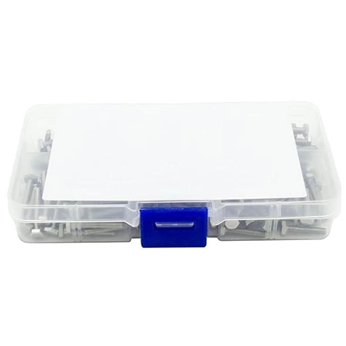 La longitud de los tornillos contiene: 10, 16, 20, 25, 1.181 in, 30 unidades cada uno. Tuerca: 150 unidades, total 300 unidades. Todo contenido en una caja de plástico resistente y transparente, se puede utilizar para una caja de almacenamiento. Fácil de instalar y duradero.