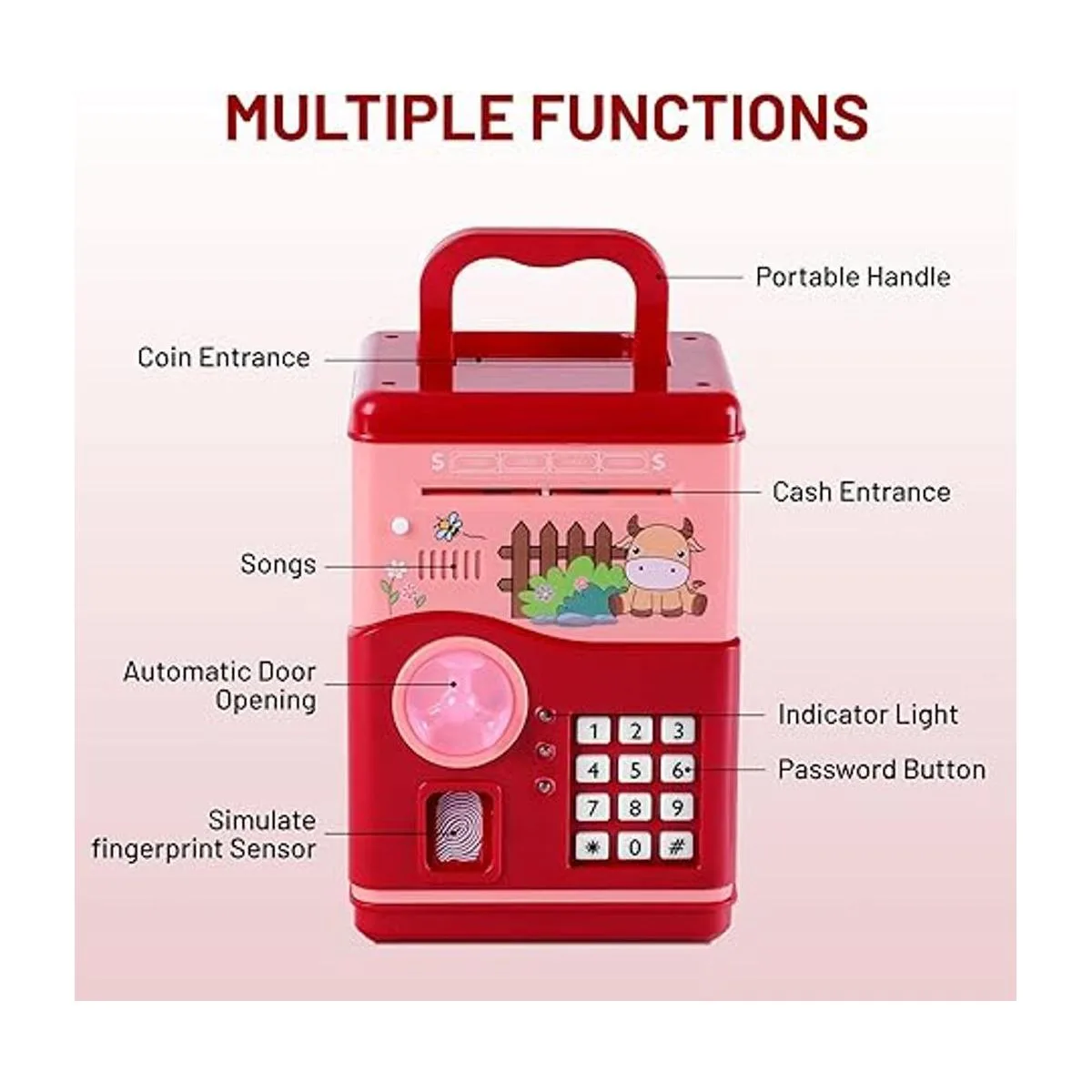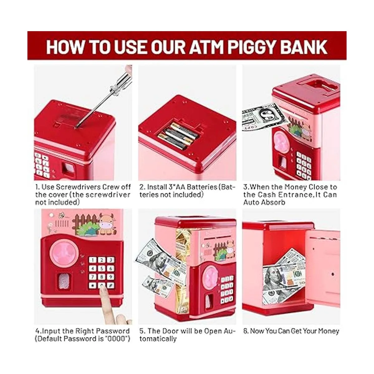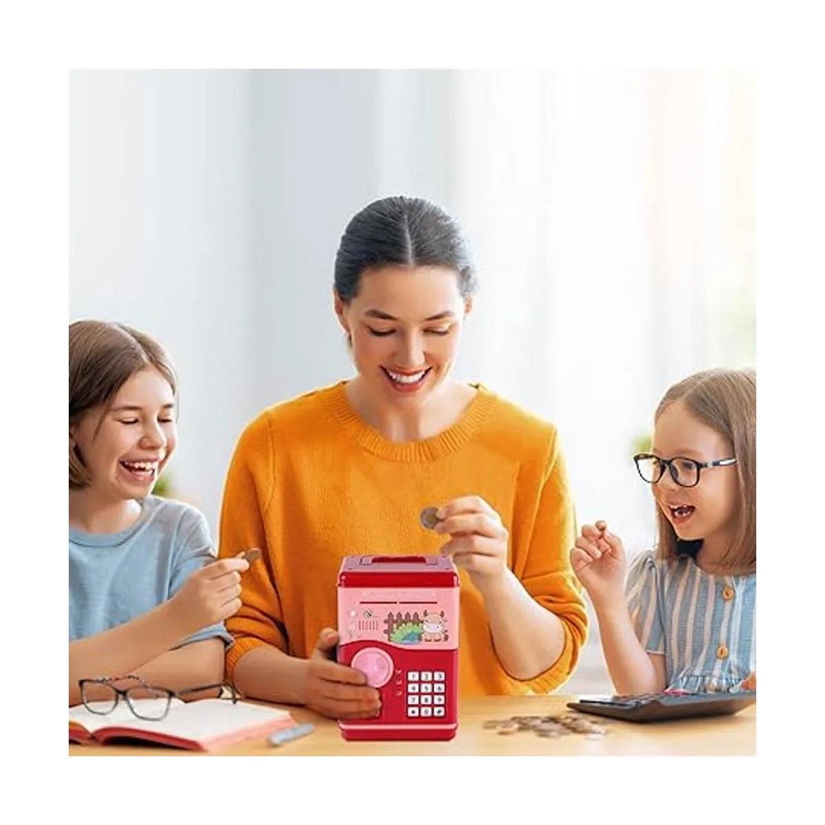 Alcancía con contraseña: esta alcancía requiere una contraseña de protección de 4 dígitos para abrirse la contraseña predeterminada es 0000. Los niños pueden establecer una nueva contraseña cuando quieran. Si olvidan la contraseña, solo tienen que quitar las baterías durante al menos 15 minutos, y la alcancía se podrá abrir otra vez con la contraseña por defecto.