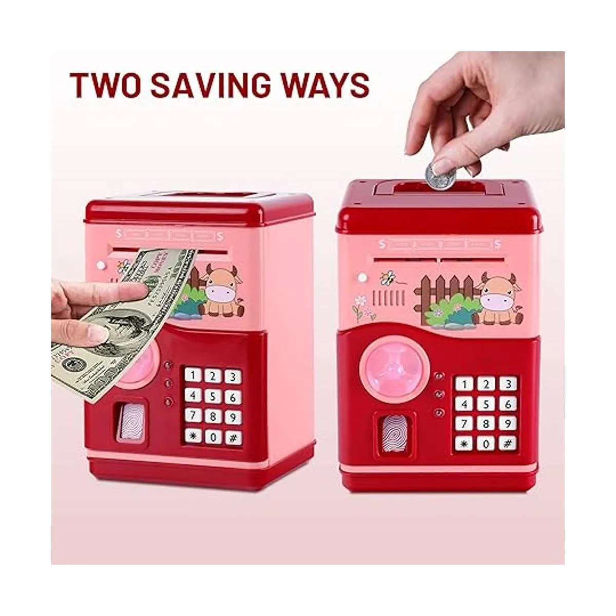 Caja para efectivo de alta capacidad: nuestra alcancía electrónica te permite almacenar hasta 600 monedas o 100 billetes. La alcancía anima a los niños a ahorrar y los ayudar a aprender a gestionar su dinero de forma más organizada. Aviso: el dinero de la imagen no es dinero real.