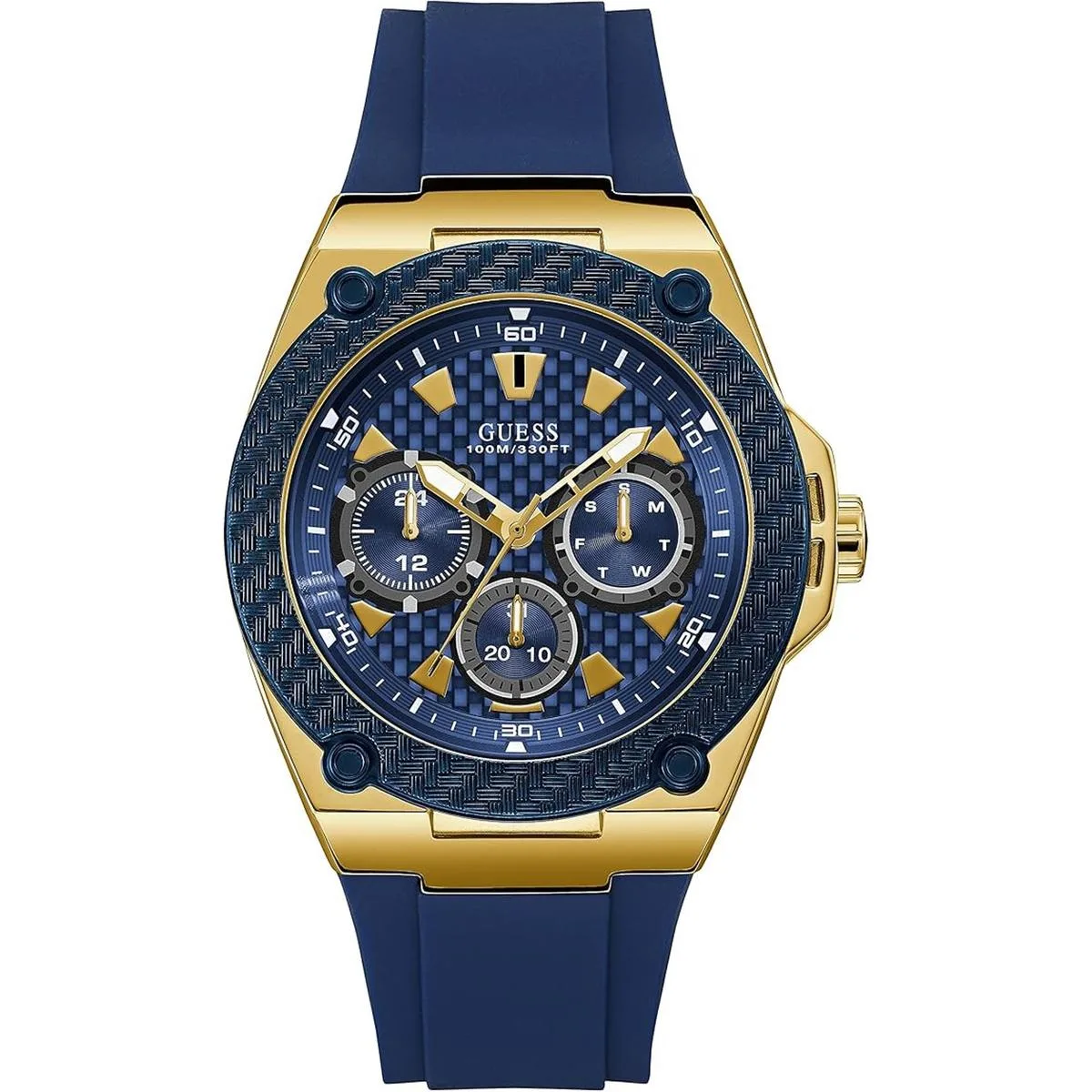 GUESS Reloj deportivo de 1.772 in, Azultono dorado, Reloj de cuarzo