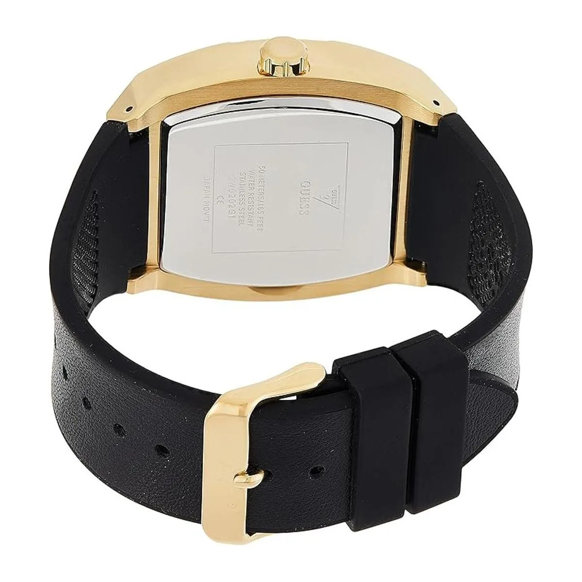 GUESS Trend Reloj multifunción de 1.693 in para hombre, esfera negra y dorada con caja de policarbonato dorado y correa de piel y silicona flexible, Negro, dorado blackGoldTone, Uno
