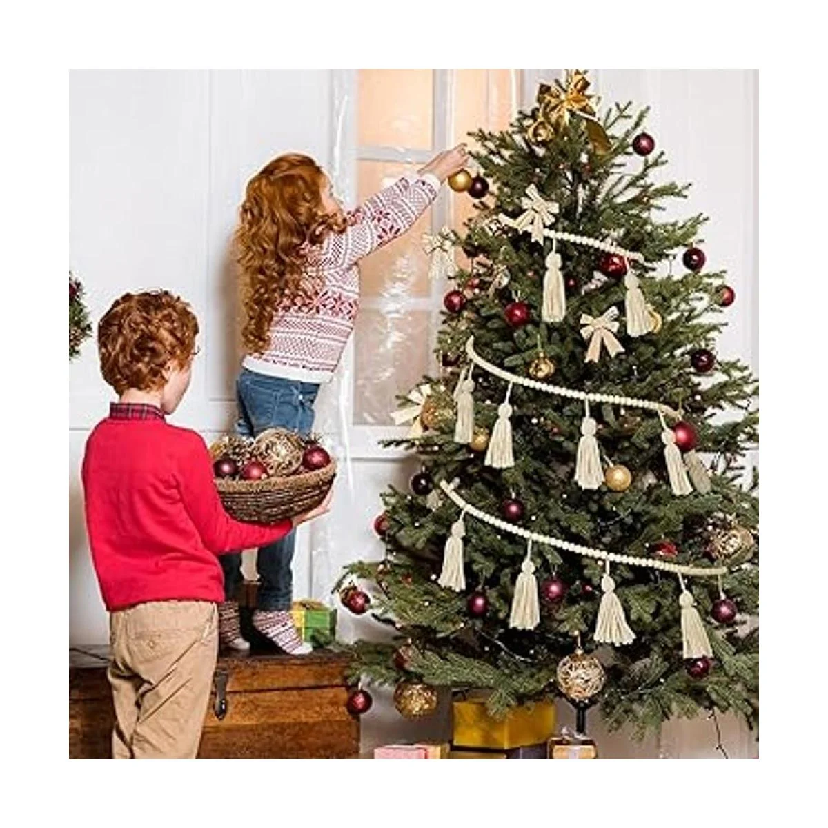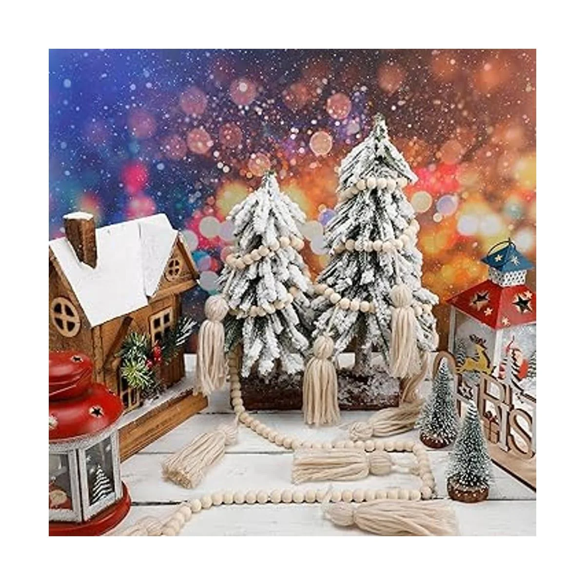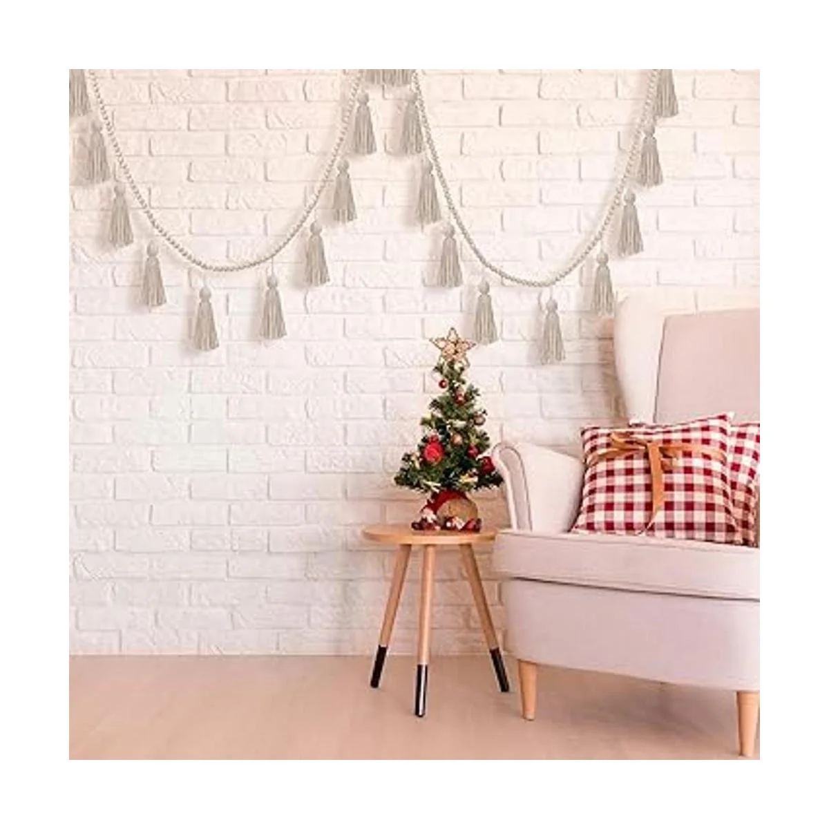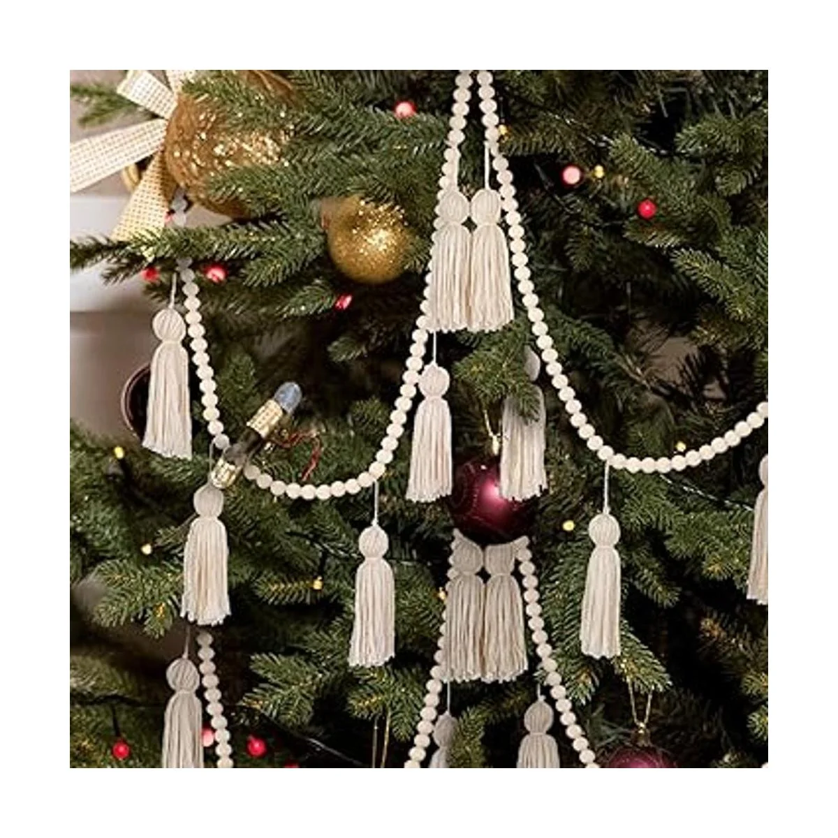 Amplias aplicaciones: la guirnalda de cuentas de madera colgante con borlas es aplicable para fiestas de Navidad, hogar, sala de estar, dormitorio, tiendas, oficinas, aulas y otros lugares, difundiendo el espíritu festivo y celebrando el festival juntos