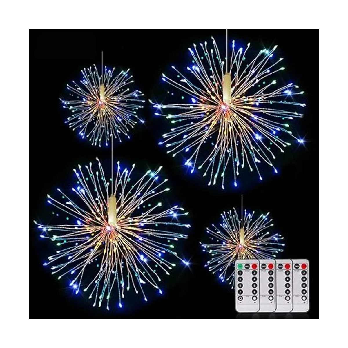 Guirnalda de luces de alambre de hadas de Navidad, luces LED de 8 modos regulables, luces decorativas impermeables para colgar en forma de estrella para Navidad, hogar, patio, decoración de interiores y exteriores 120multicolor, paquete de 4