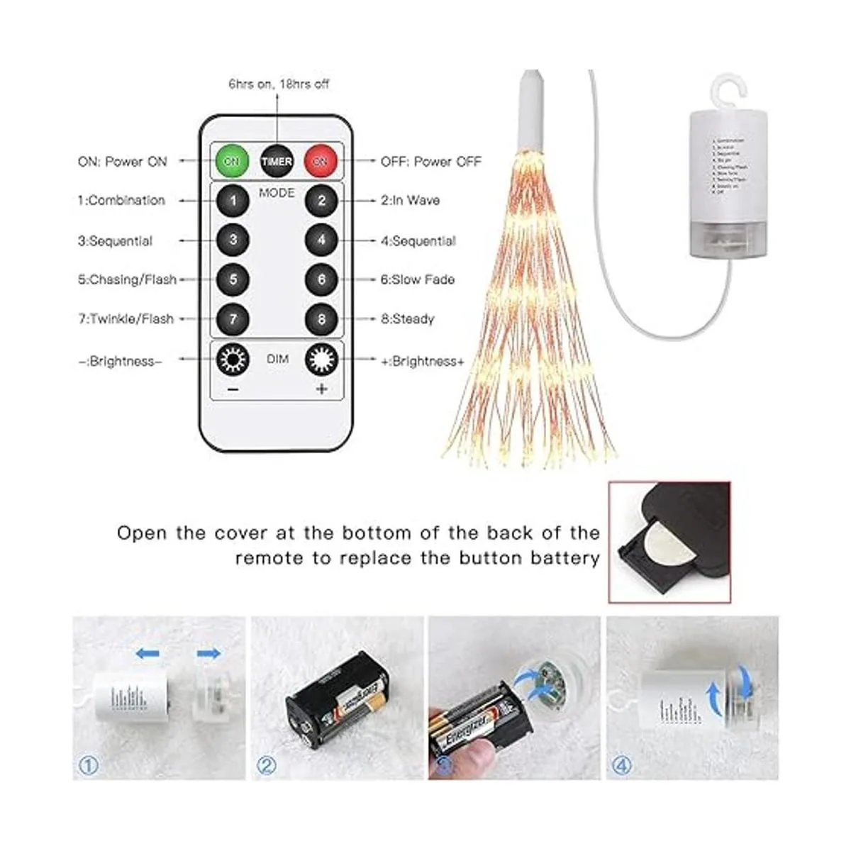 Control remoto y temporizador: control remoto inalámbrico, rango de recepción efectivo es de 10 a 49.2 ft, requiere 4 pilas AA pilas no incluidas. La luz colgante de batería elimina el control de enchufe, puedes ponerlo donde la necesites. Y ajusta el temporizador pulsando el botón Temporizador, la cadena de luces será de 6 horas encendidas y 18 horas apagadas por día.