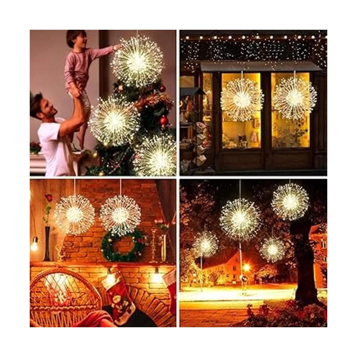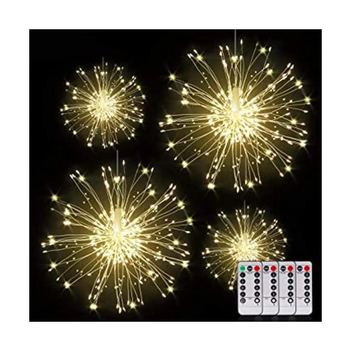 Guirnalda de luces de alambre de hadas, luces LED de Navidad, 8 modos regulables, luces decorativas impermeables para colgar, para Navidad, hogar, patio, decoración interior y exterior 120 luces cálidas, paquete de 4