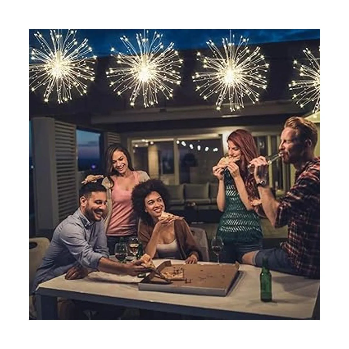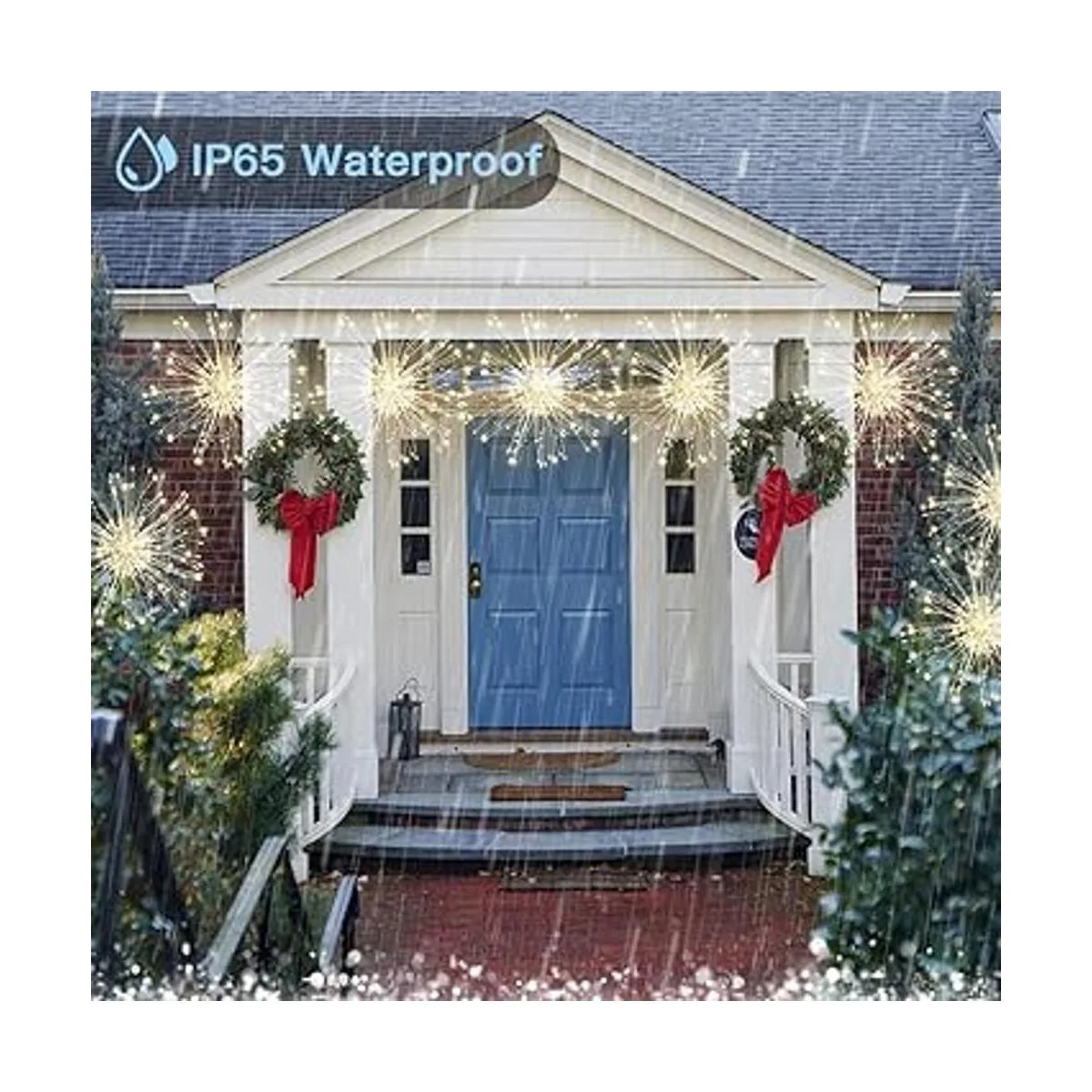Modo nocturno y amplio uso: cadena de luces de Navidad mejoradas con 8 modos diferentes estabilizador/flash/suave/estroboscópico, etc., puede crear atmósferas dinámicas vibrantes. Las luces LED también tienen un gancho, se pueden instalar en la sala de estar, dormitorio, pasillo, jardín, bar, ventanas, etc. Uso perfecto para exteriores, patio, jardín, árbol de Navidad, boda, etc.