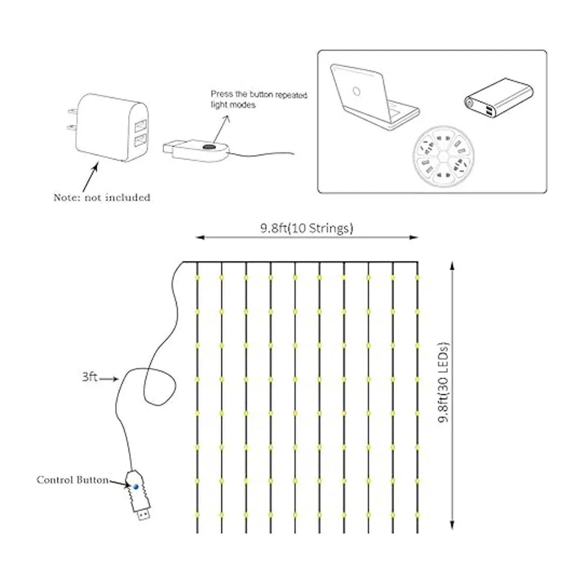 Cobre con forma de bricolaje: diferente de otras luces de cortina, diseñada con alambre de cobre flexible que se puede doblar a cualquier forma que desees. Esta guirnalda de luces es ideal para tu hogar, bar, ventana, festival, boda, día de San Valentín, fiesta de cumpleaños, Halloween, Navidad, decoración de pared.