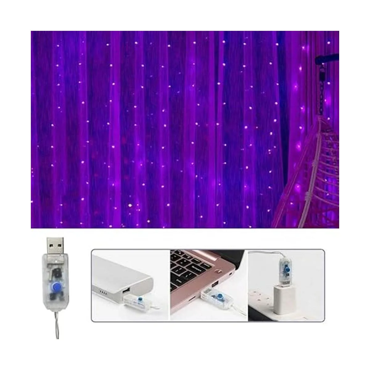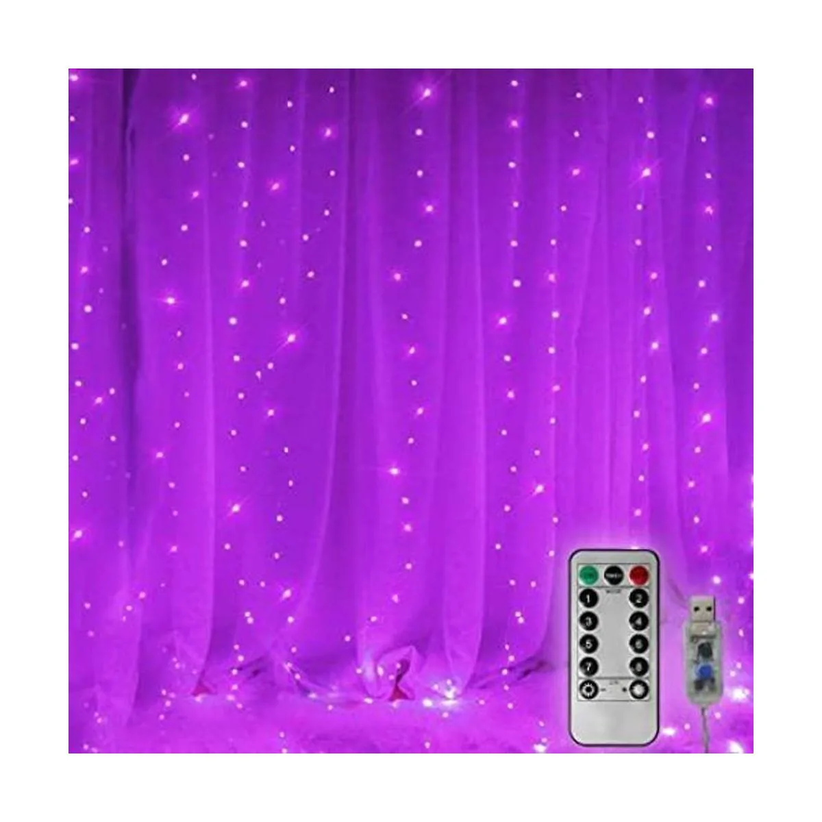 Guirnalda de luces de cortina para decoración de Halloween, 300 luces LED parpadeantes con temporizador remoto, alimentación USB, 8 modos, luces de hadas moradas para pared de dormitorio, tapiz, ventana, decoración de Navidad, 9.8 pies x 9.8 pies morado