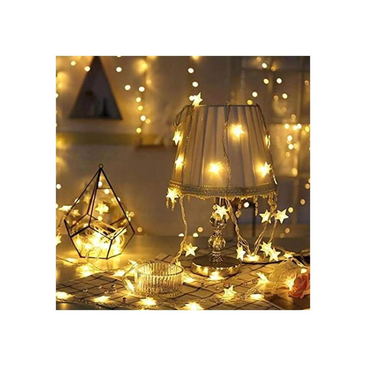 Luces de decoración brillantes: 19.6 pies 40 luces LED de color blanco cálido que hacen que cada noche estrellada, añadiendo un ambiente caprichoso. Distancia entre estrellas:0.49ft El paquete incluye: 1 paquete de 40 luces LED de estrella.