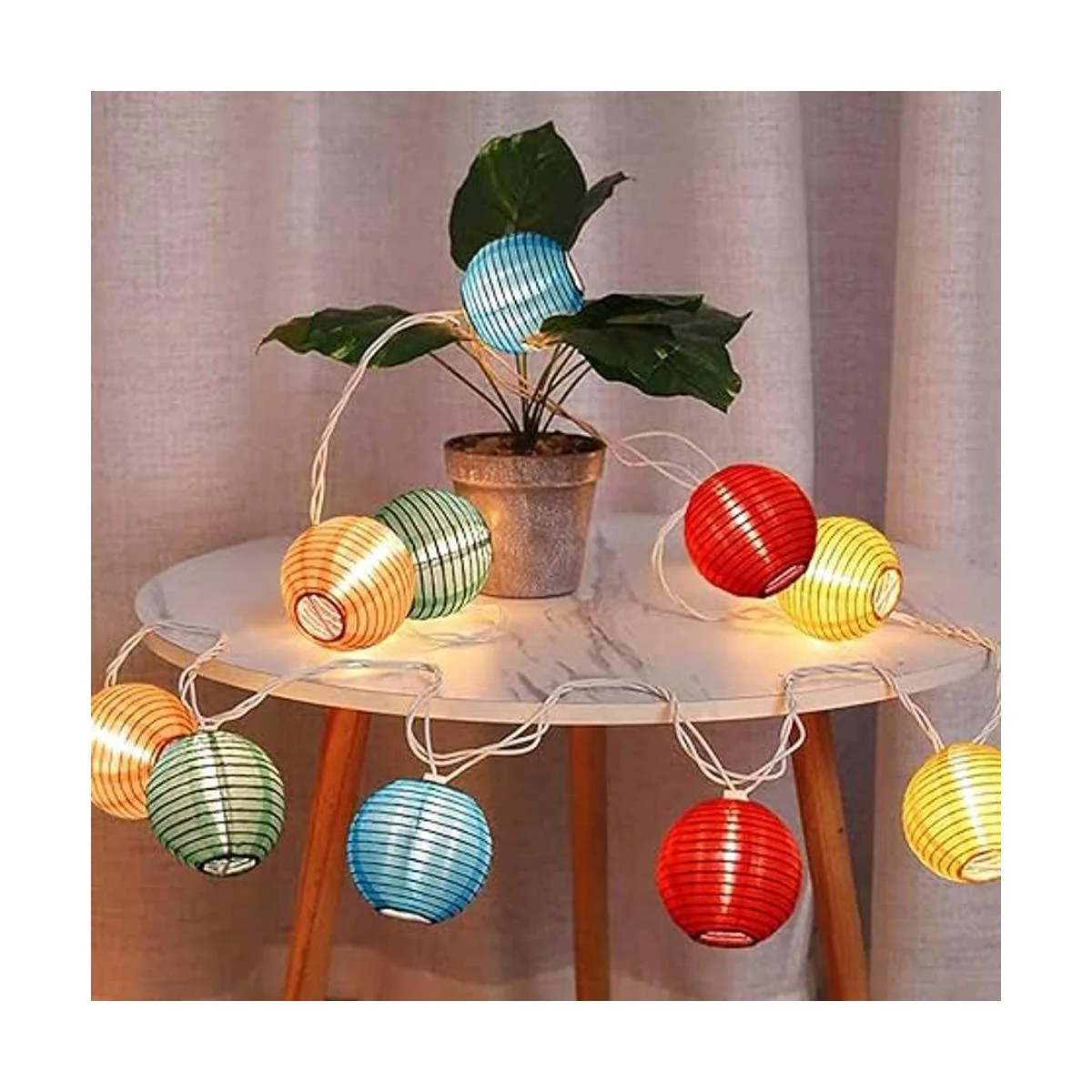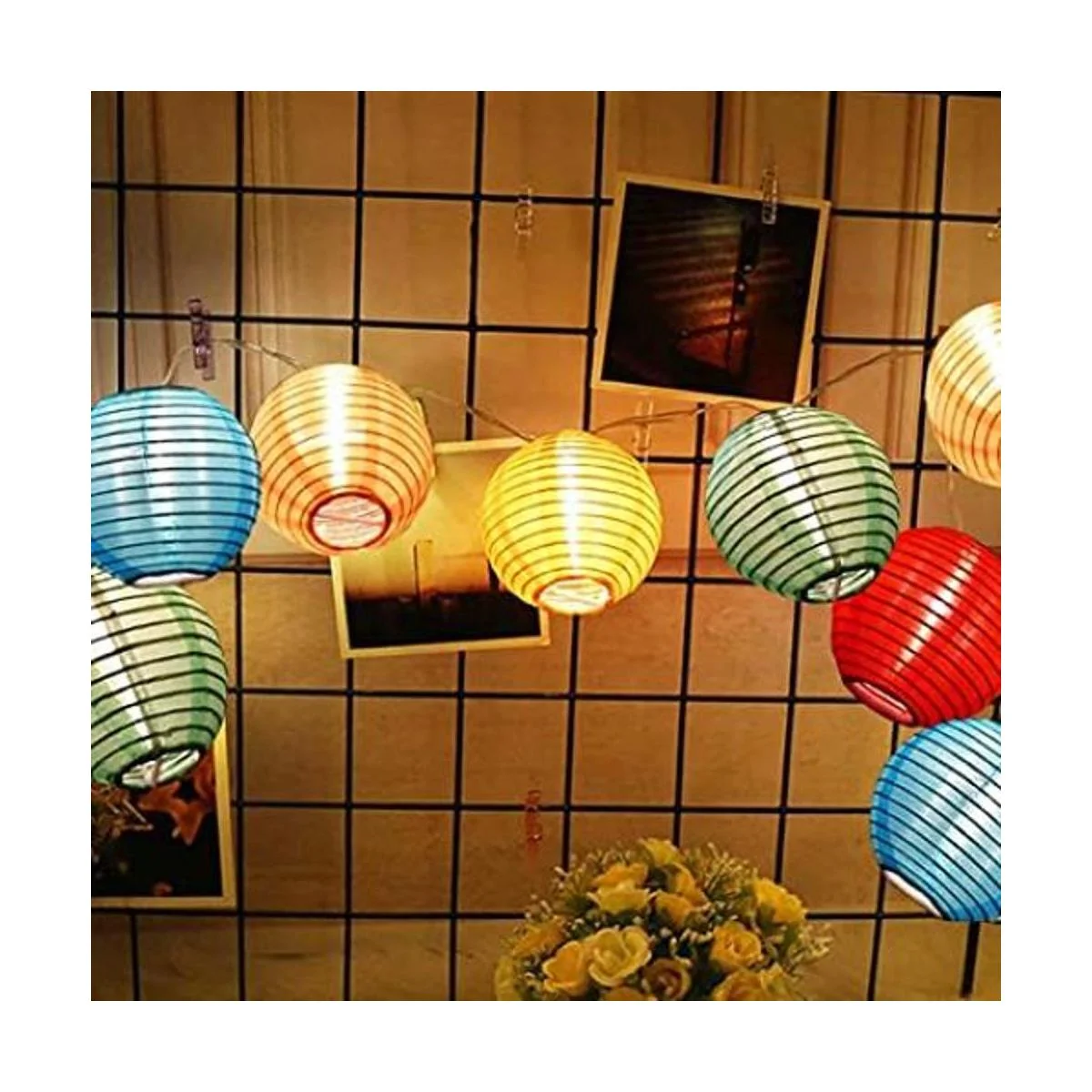 Guirnalda de luces de nailon de 8.5 pies con 10 linternas multicolor para decoración de interiores y exteriores, jardín, luces decorativas para patio, fiesta, boda, bar, jardín, puerta delantera, alambre blanco