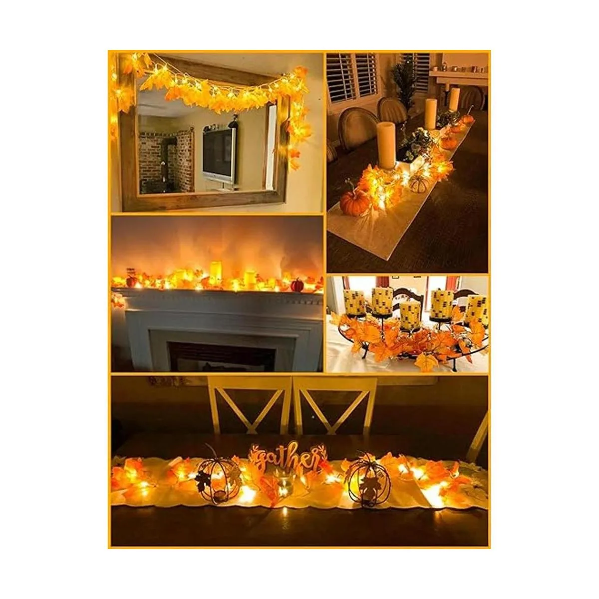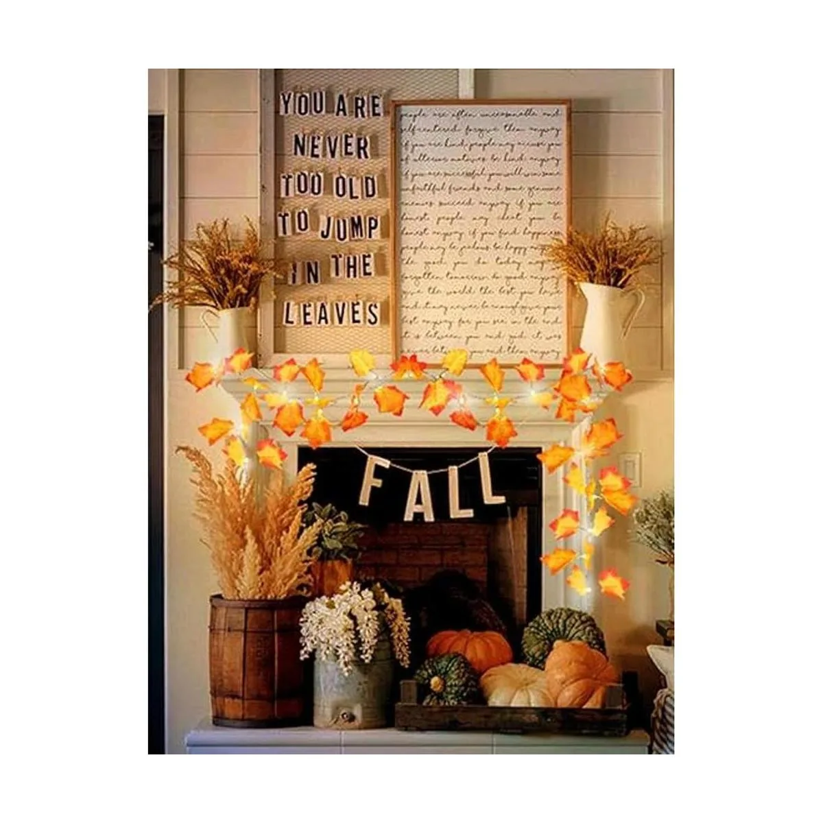 LOOKS LIKE THE REAL FALLEN LEAVES The orange and yellow leaves lit by the vibrant orange lights make for a great blend of colors to warm up any room. Perfect festival thanksgiving decorations for home with no outlet needed.