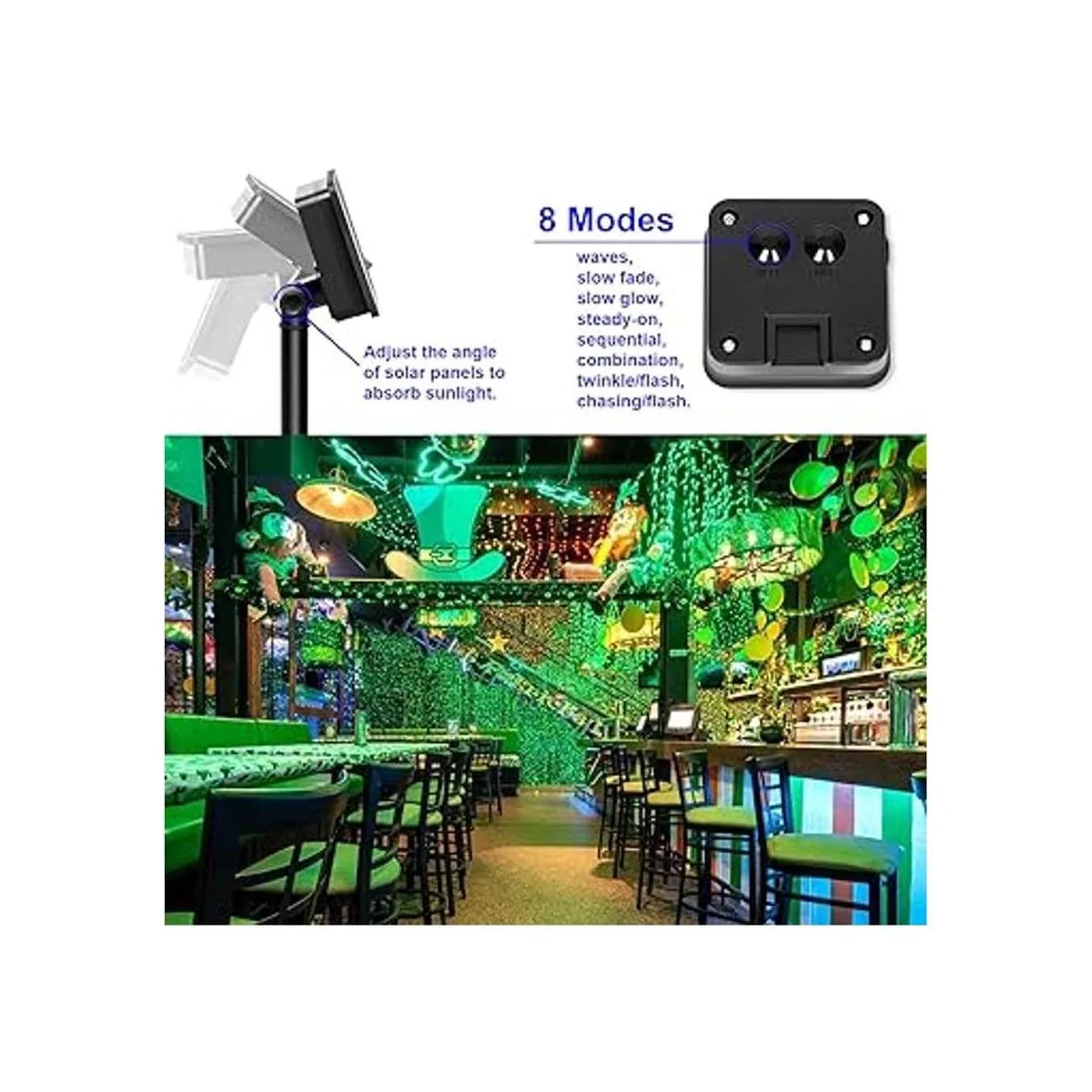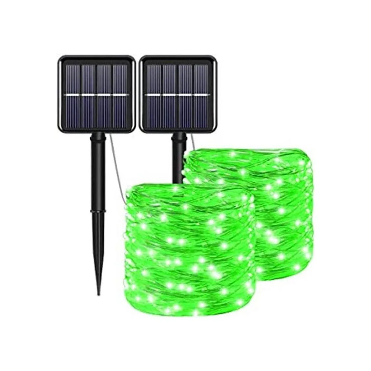 Guirnalda de luces solares de Navidad verdes para el día de San Patricio, impermeables, paquete de 2 unidades cada una de 100 luces LED de 8 modos de iluminación, luces de hadas para jardín, patio, valla, balcón 2 unidades