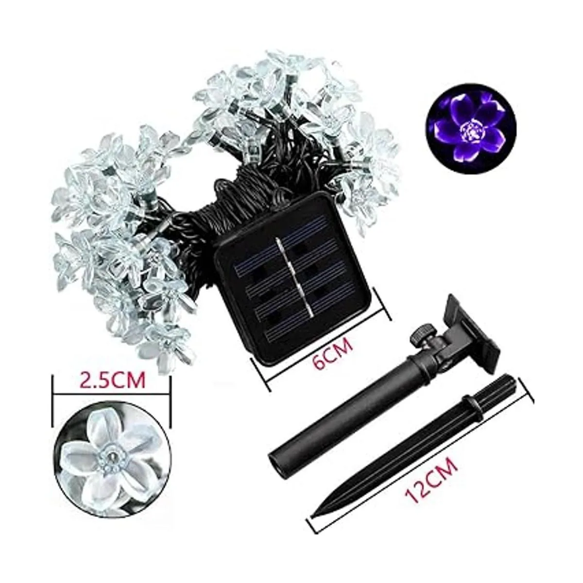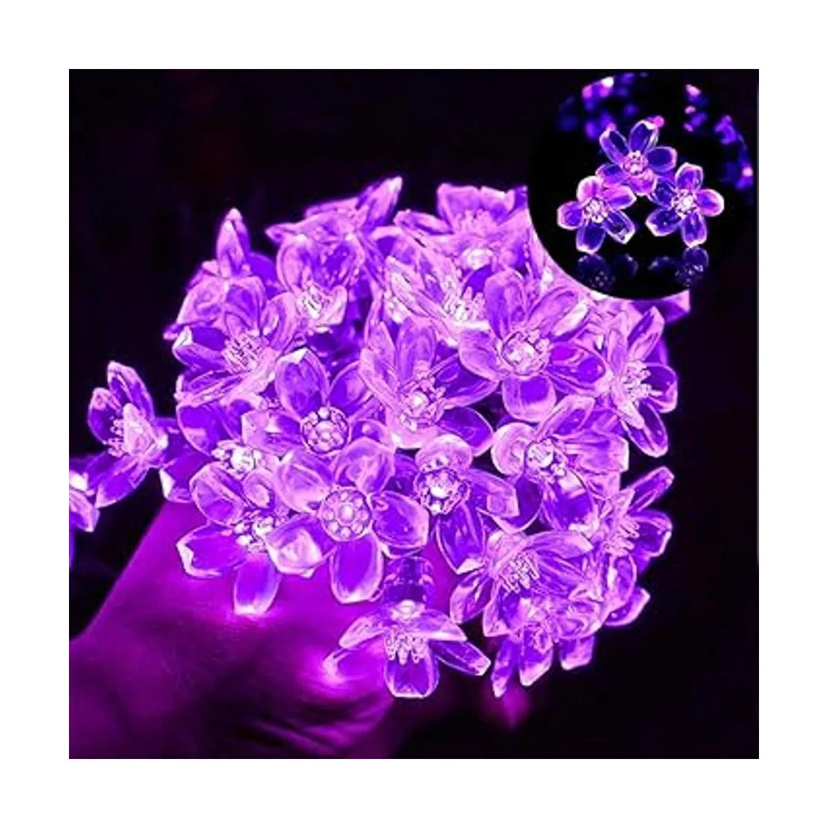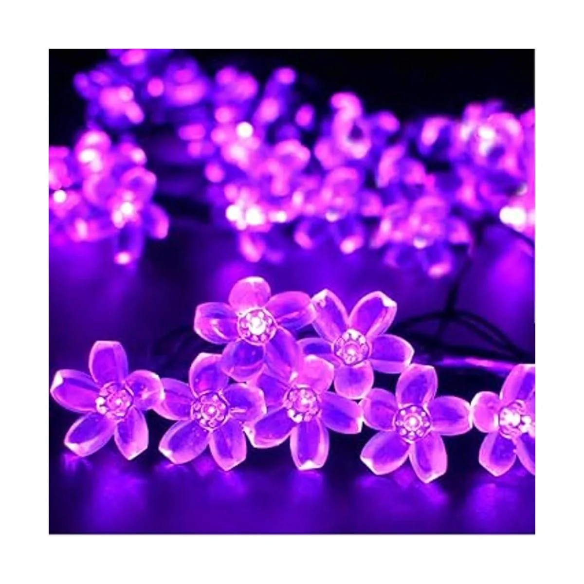 Guirnalda de luces solares para exteriores, 50 luces LED de Navidad en forma de flor para decoración de patio, jardín, color morado