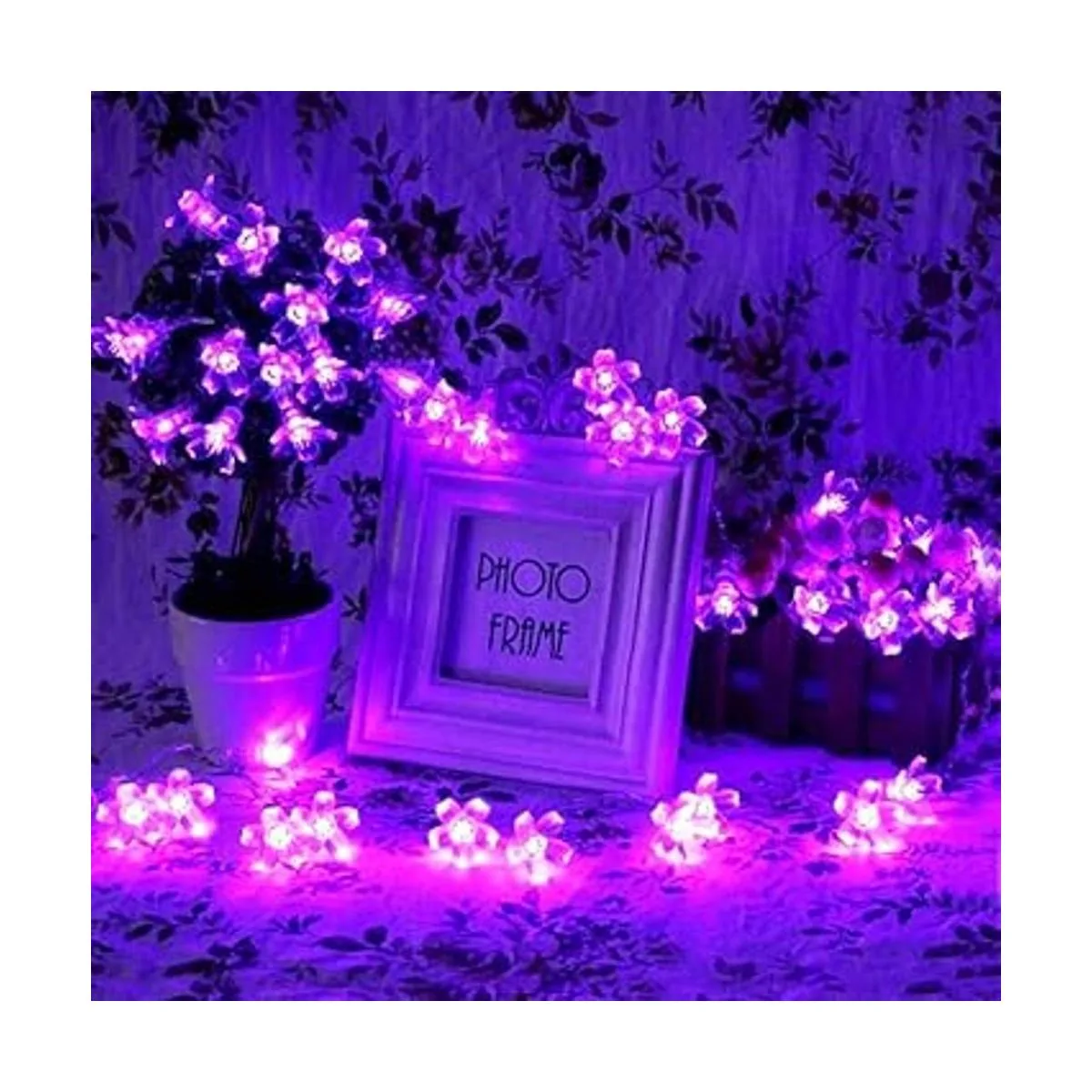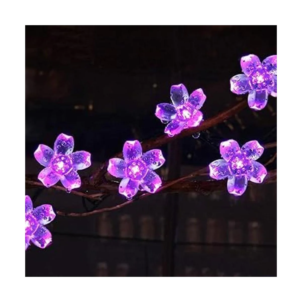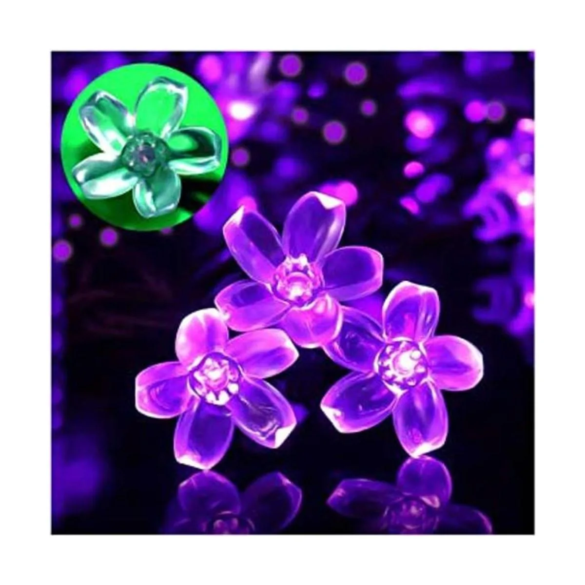 Guirnalda de luces solares para exteriores, 50 luces LED de Navidad en forma de flor para decoración de patio, jardín, color morado