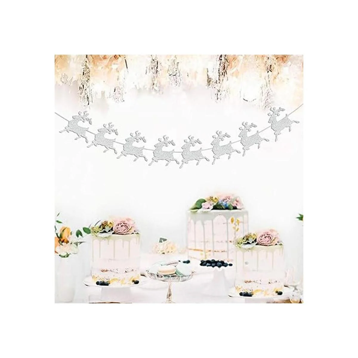 Guirnalda de renos con purpurina plateada, guirnalda de Navidad, decoración de fiesta de Navidad.
