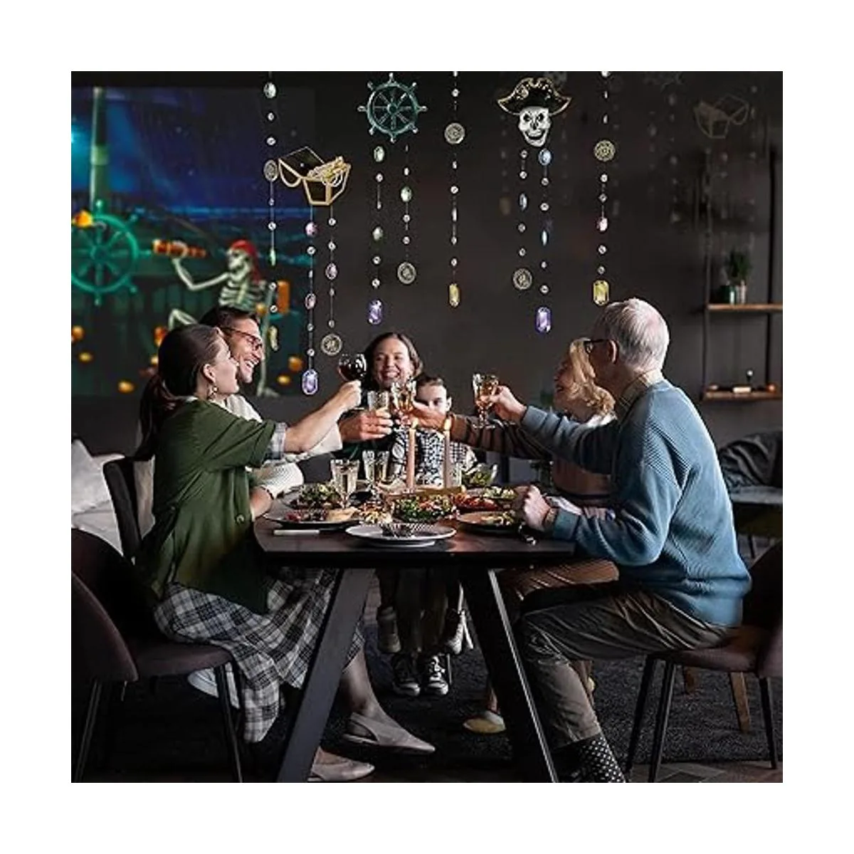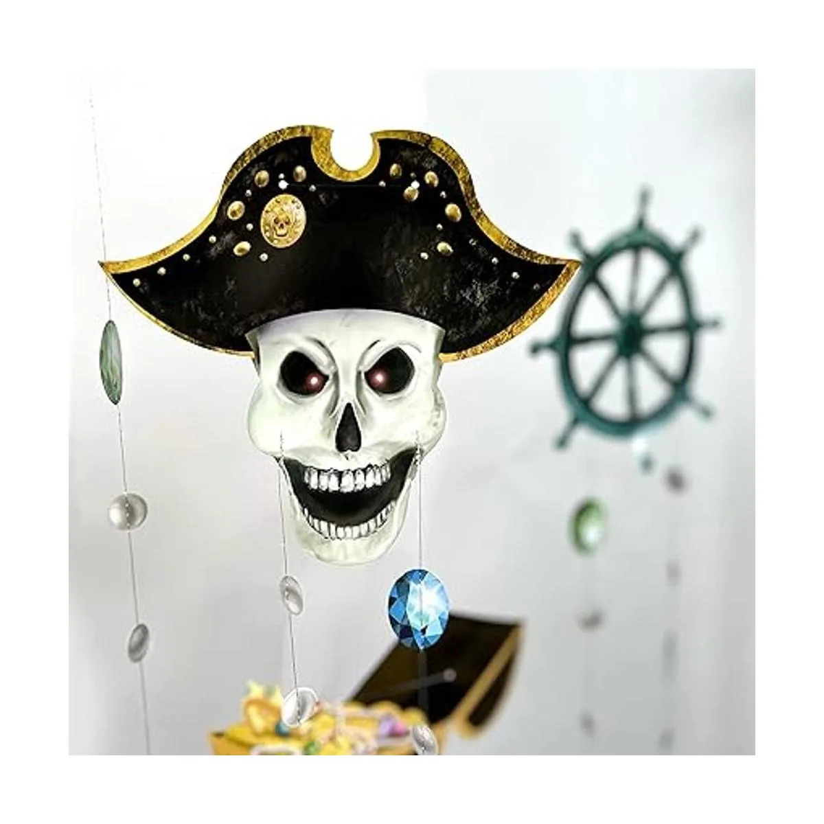 Guirnalda pirata de calavera de 6 cuerdas para decoración de fiesta de Halloween, caja del tesoro, decoración colgante de hombre, esqueleto pirata, telón de fondo para adultos y niños, disfraz de cosplay, suministros de fiesta de cumpleaños