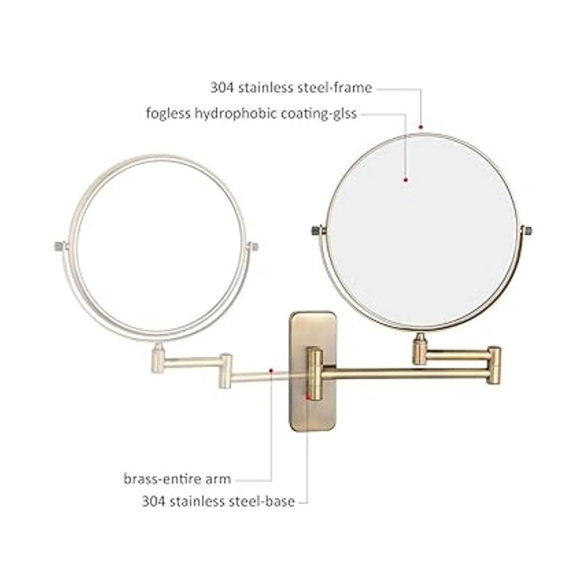 Brazo extensible y diseño plegable: este espejo está diseñado con un brazo extensible que se puede extender y plegar suavemente, por lo que puedes utilizar este espejo en cualquier ángulo, este diseño también puede ayudarte a ahorrar espacio.