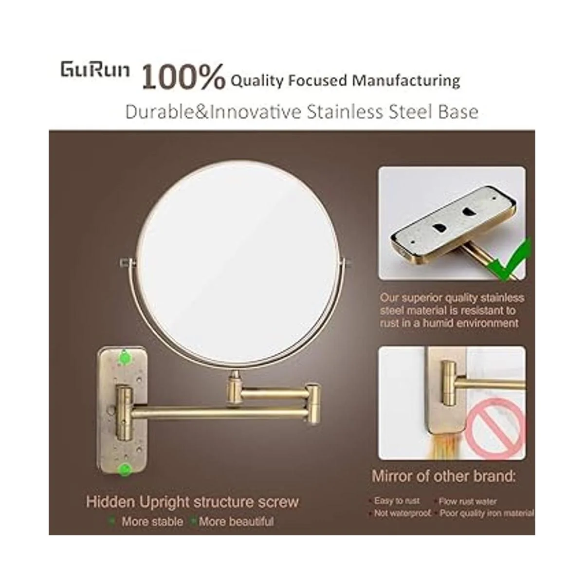 Enfoque en la calidad: GURUN es un enfoque en el espejo de maquillaje, y nos preocupamos por la calidad del espejo. Siempre elegimos latón de alta calidad y luego lo procesamos cuidadosamente, lo que hace que nuestros productos sean inoxidables, anticorrosivos y duraderos.