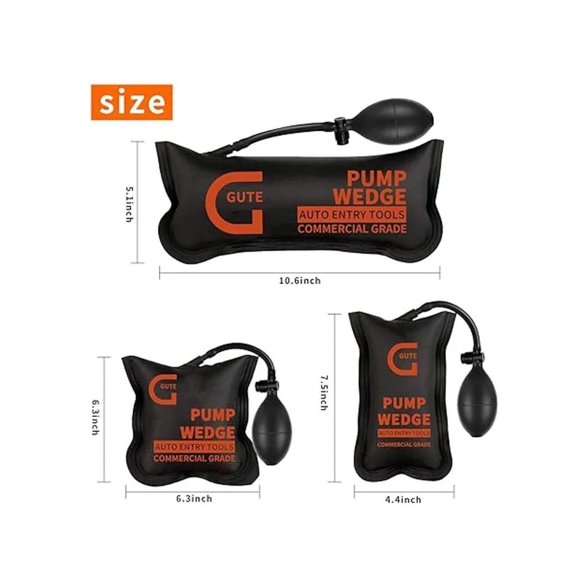 Gute Cuña de aire, bomba de bolsa de cuña de aire, paquete de 3 herramientas de bomba de aire inflable comercial, kit de nivelación profesional y herramienta de alineación, herramienta de extracción de bolsas de aire para variedad de trabajos, clasificación de 330 libras, 3 tamaños