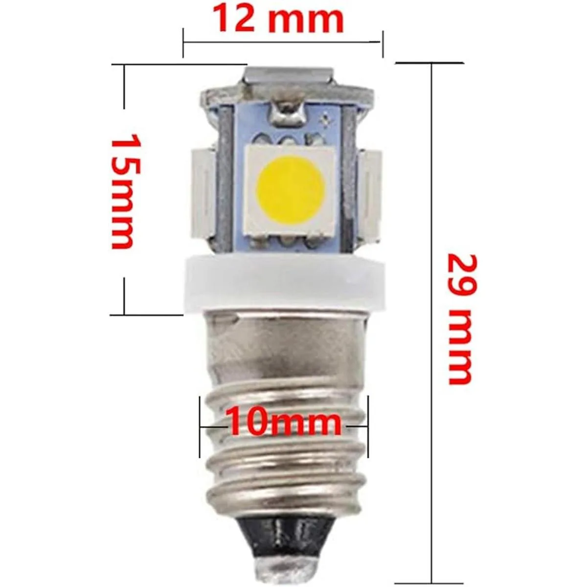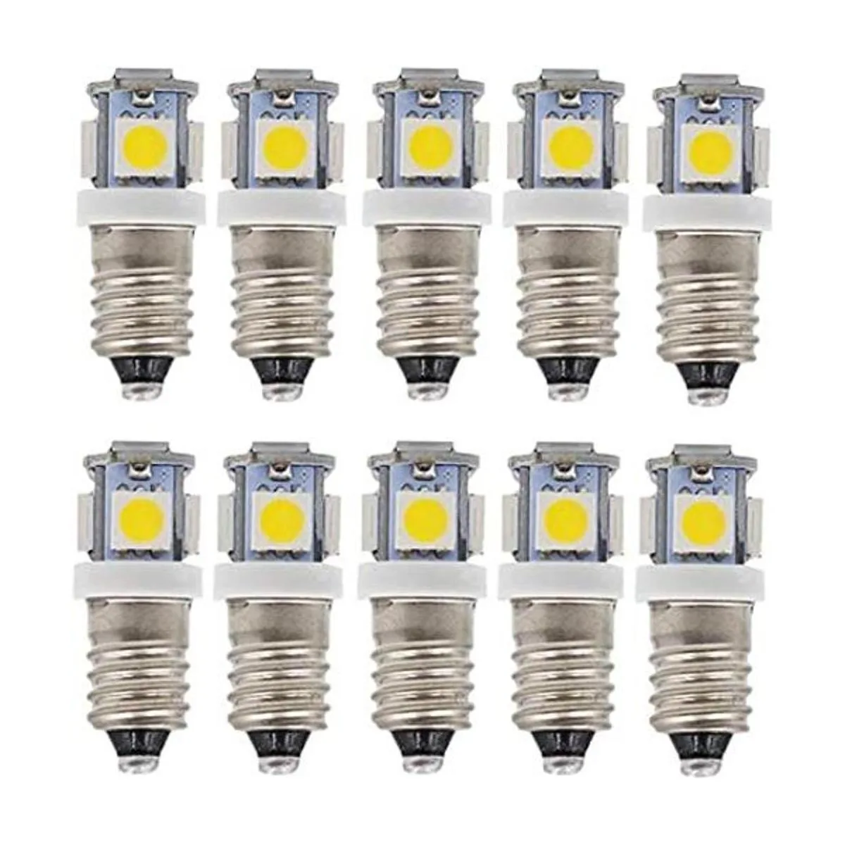GutReise Bombillas LED E10 CA, paquete de 10 bombillas LED de 12 V, blanco cálido, tornillo E10, 0,5 W, 50 lúmenes CA 12 V, blanco cálido