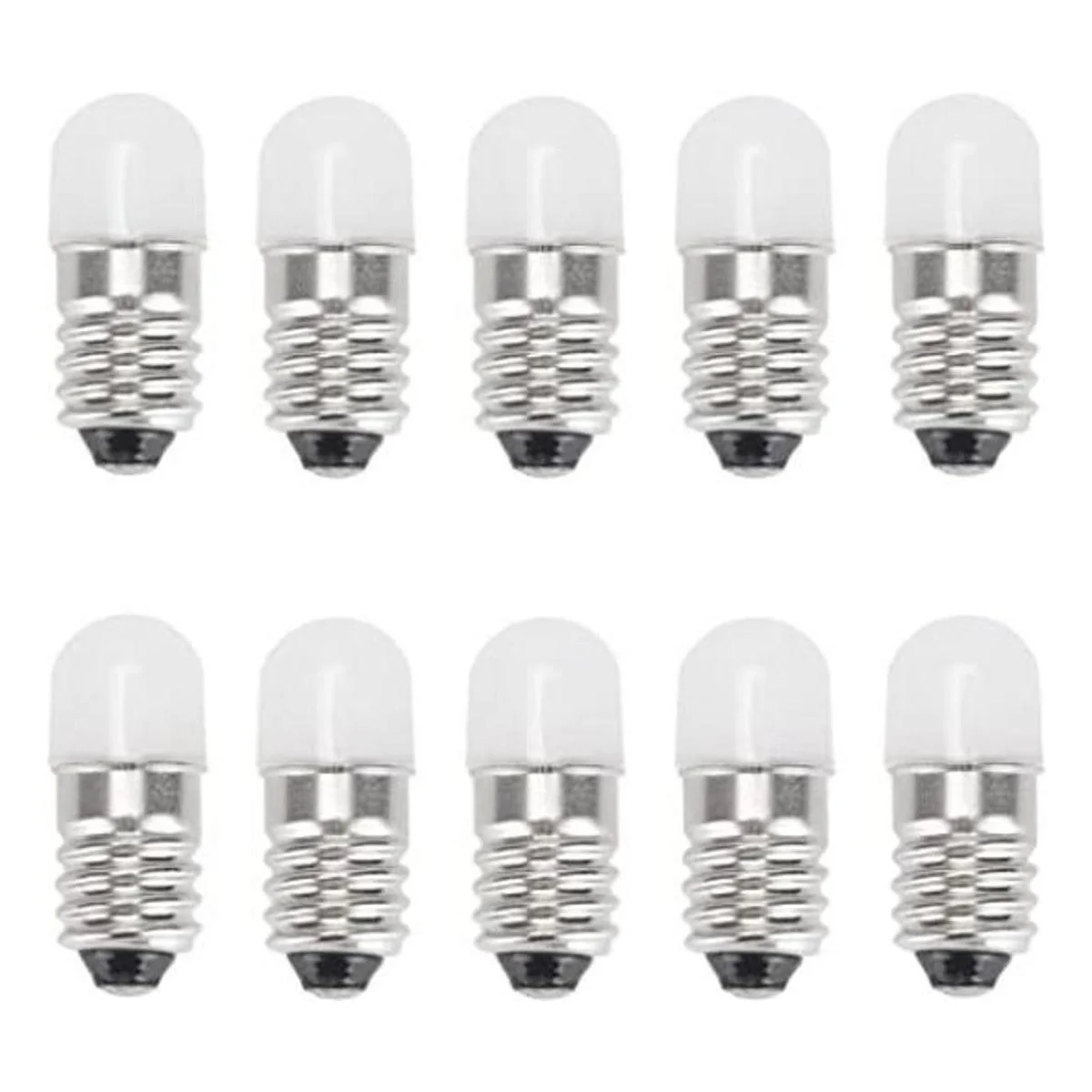 GutReise Bombillas LED E10 de 3 V de color blanco frío, 10 unidades de ACDC E10 de tornillo miniatura de 0,5 W, 65 Lm 3 V, blanco frío