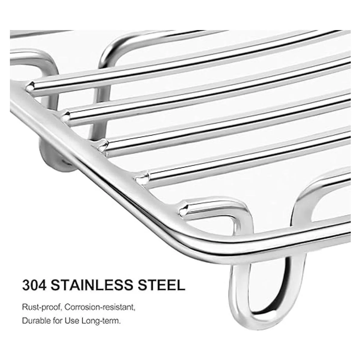 Material de acero inoxidable 304 duradero, resistente al óxido y a la corrosión, elegante y suave, no se pega al jabón, no es frágil en comparación con el soporte de jabón de plástico y madera, más ligero que la jabonera de cerámica.