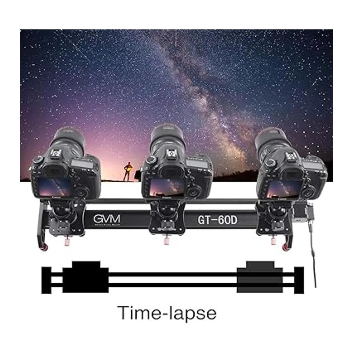 Suave y multifunción: el deslizador motorizado GVM está hecho de aleación de aluminio. Es muy suave y asegúrate de proporcionar video estable e imágenes de fotografía claras convenientemente. El deslizador de la cámara soporta disparo de lapso de tiempo, grabación de video y disparo automático de viaje redondo.