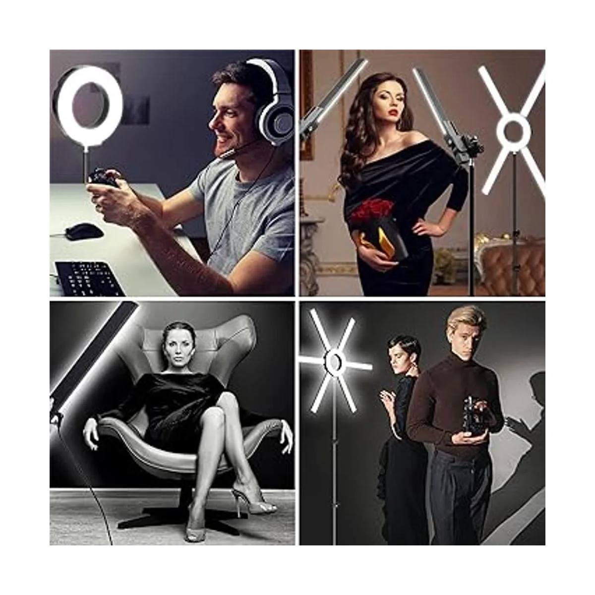 Hecho para grabación de vídeo/fotografía: diseño único de seis barras de luz desmontables, también se puede utilizar como un anillo de luz que puede enriquecer la proyección de luz y el rango de luz significativamente, ideal para tu fotografía de estudio, YouTube, maquillaje de belleza y vídeo en directo utilizando