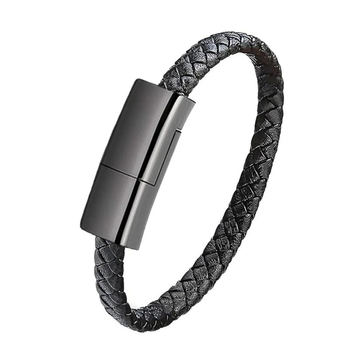 GVUSMIL Pulseras trenzadas de cuero con carga USB para iPhone, metal hematita y cuero negro