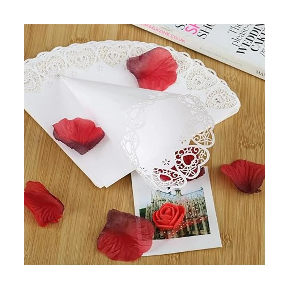 Material: hecho de papel de encaje blanco, exquisito y duradero.