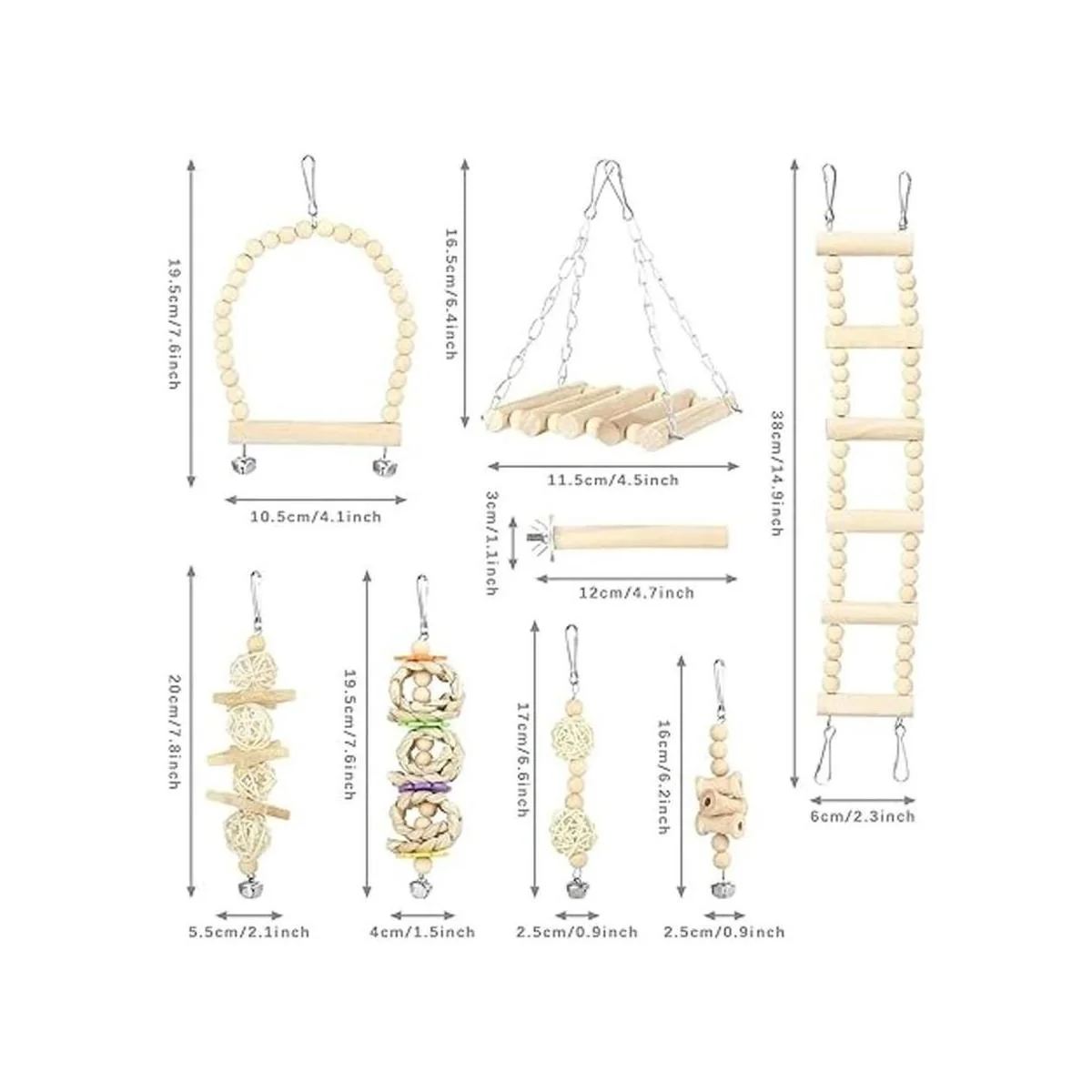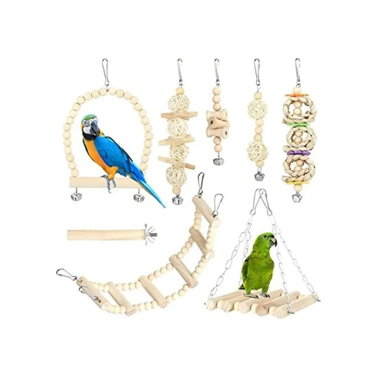 GWHOLE 8 unids pájaro loro juguetes columpio masticación colgante juguetes pie jaula accesorios para loros cacatúas conures periquitos periquitos