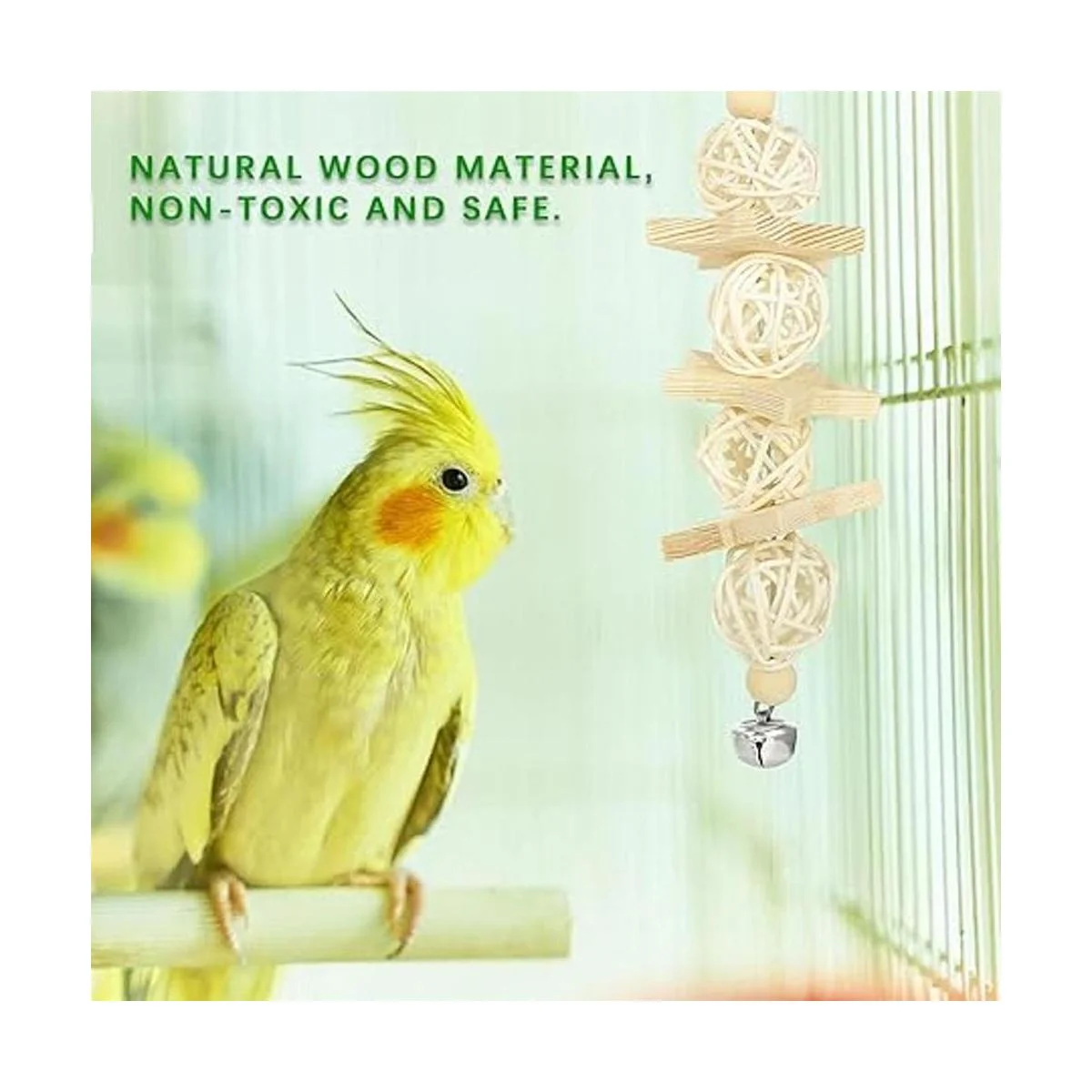 La seguridad es lo primero: hecho de madera natural no tóxica, seguro para que tu adorable loro mastique y juegue. Todas las campanas están hechas de metal de alta calidad y el diseño de la boca de la campana está cerrada, que no se atasca la boca del pájaro.