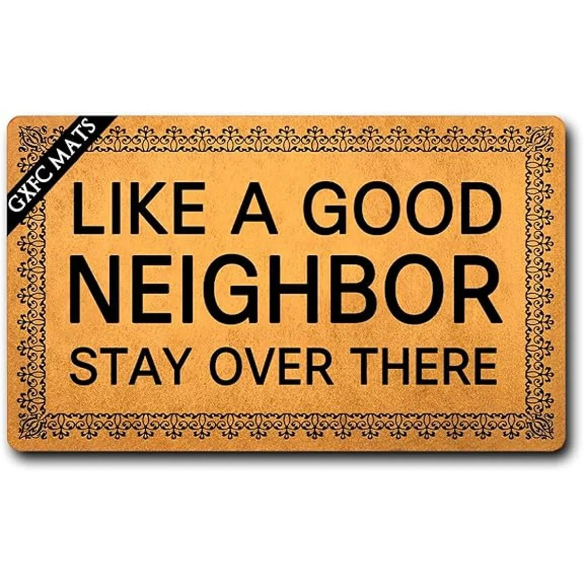 GXFC Tapete de bienvenida con parte trasera de goma como un buen vecino Stay Over There divertido felpudo para entrada de entrada, tapete de cocina antideslizante de 30 pulgadas de largo x 18 pulgadas de ancho