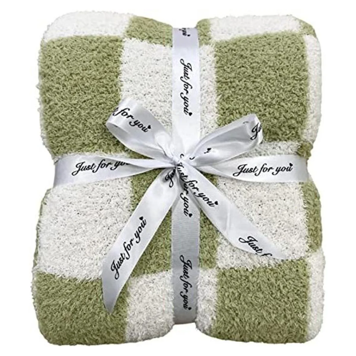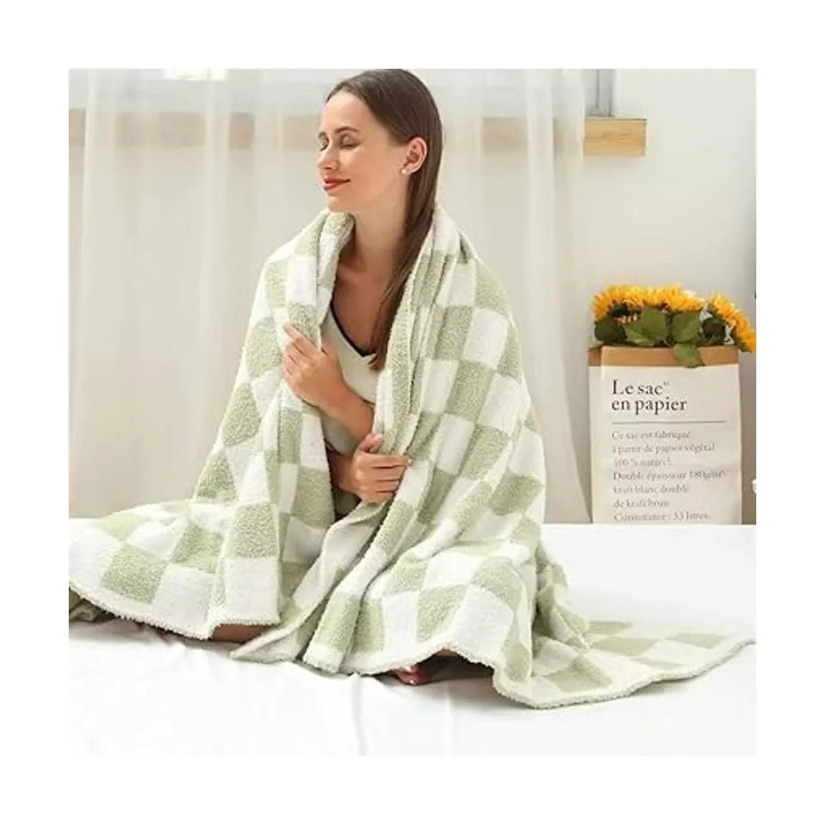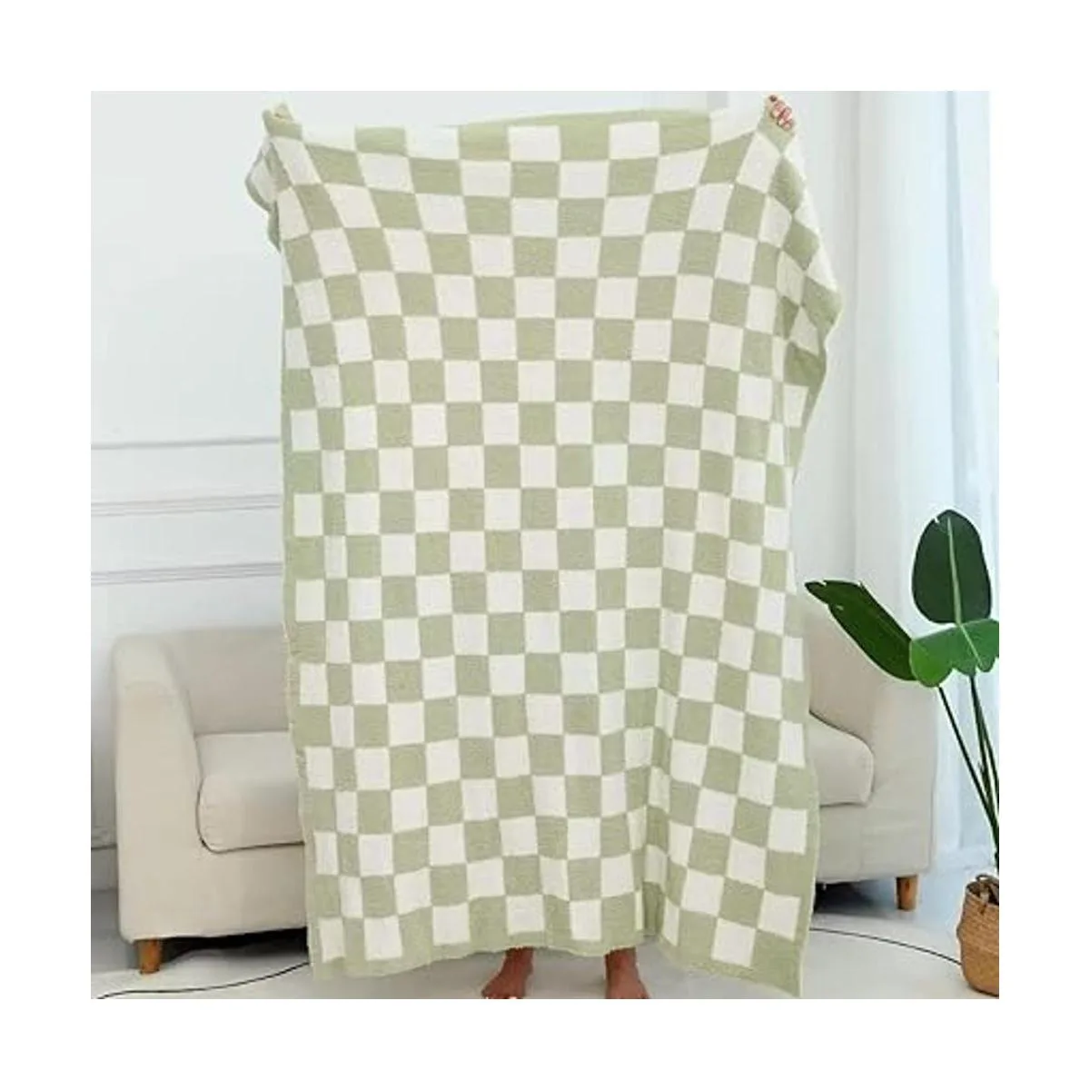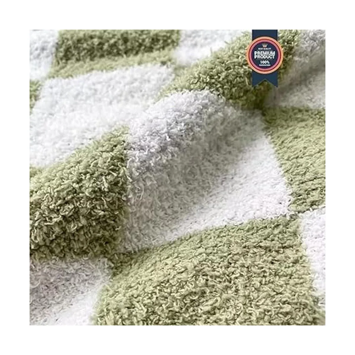 GY Manta a cuadros verde salvia, manta decorativa a cuadros, súper suave, cálida y acogedora manta esponjosa para silla, sofá, cama, campamento, viajes, verde salvia, 51 x 63 pulgadas