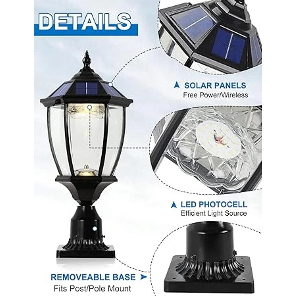 Dos opciones de montaje: viene con una base de montaje de 3 pulgadas de alto para colocar firmemente en la superficie como pilar de patio al aire libre, columna de ladrillo o se adapta a postes de poste de 3 pulgadas de diámetro externo en jardín o patio trasero poste no incluido.