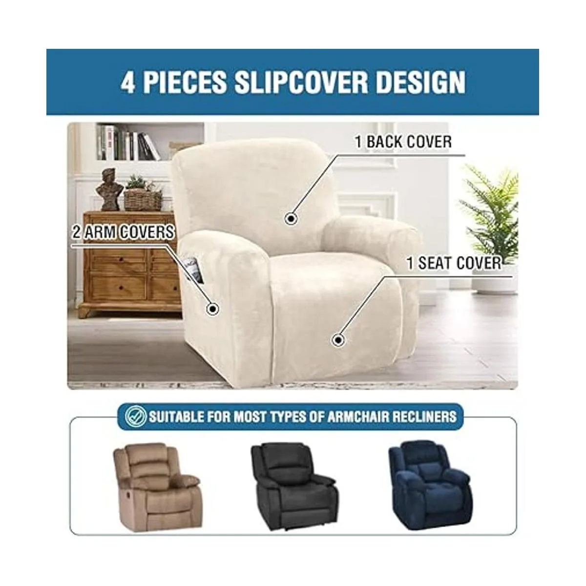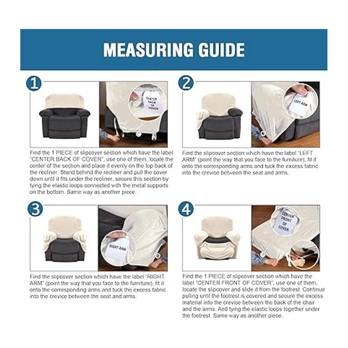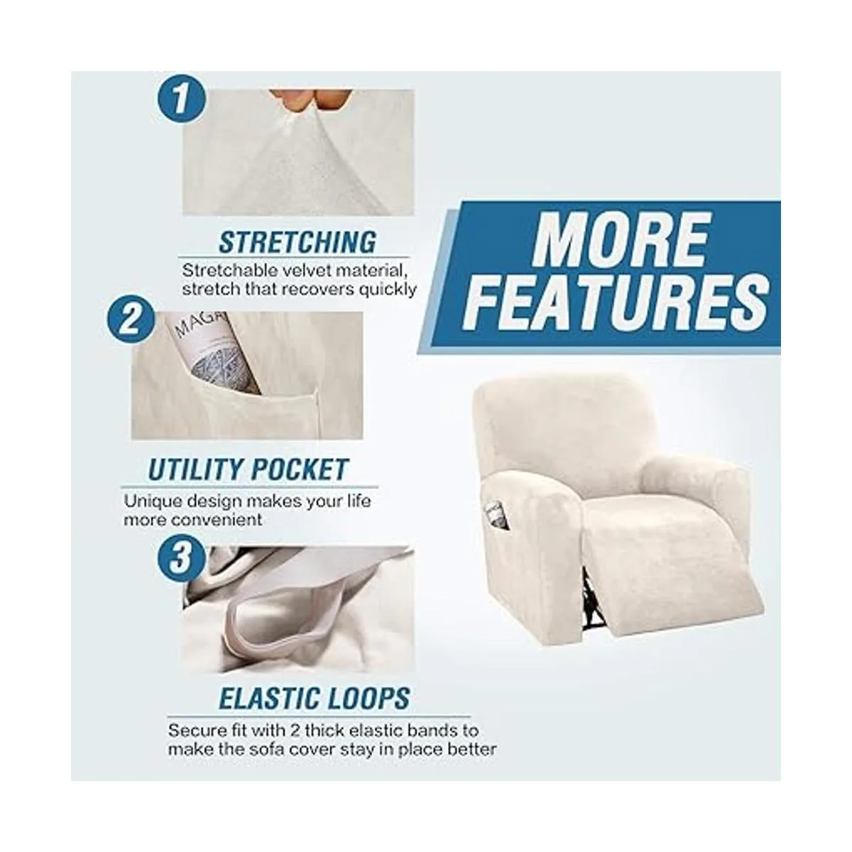 Ajuste perfecto: Esta innovadora funda de sofá reclinable está hecha de tela de felpa de terciopelo de lujo, incluye 4 piezas para 2 brazos, 1 parte central superior y 1 parte del asiento, se ajusta a un anchura de entre 2739 pulgadas. Con bolsillo lateral derecho y reposapiés continuo. Cada parte del asiento tiene dos trabillas elásticas en las esquinas traseras para jalarlo desde la parte posterior del sillón reclinable.