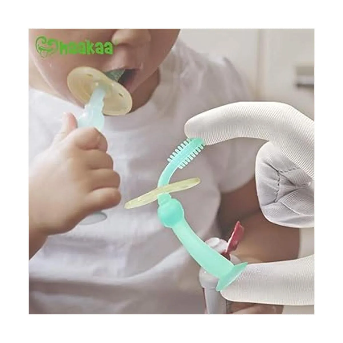 El cepillo de dientes de silicona Haakaa 360 está hecho con cerdas que cubren toda la cabeza del cepillo, proporcionando una limpieza de 360. Elimina más placa y proporciona una mejor experiencia de limpieza general que los cepillos de dientes convencionales para niños.