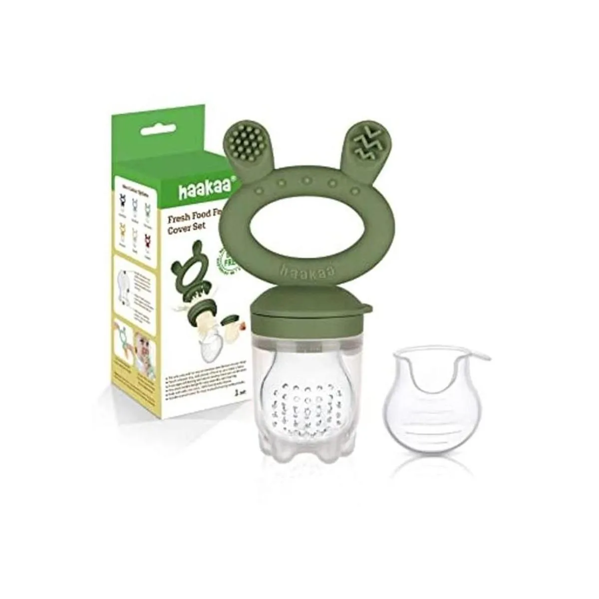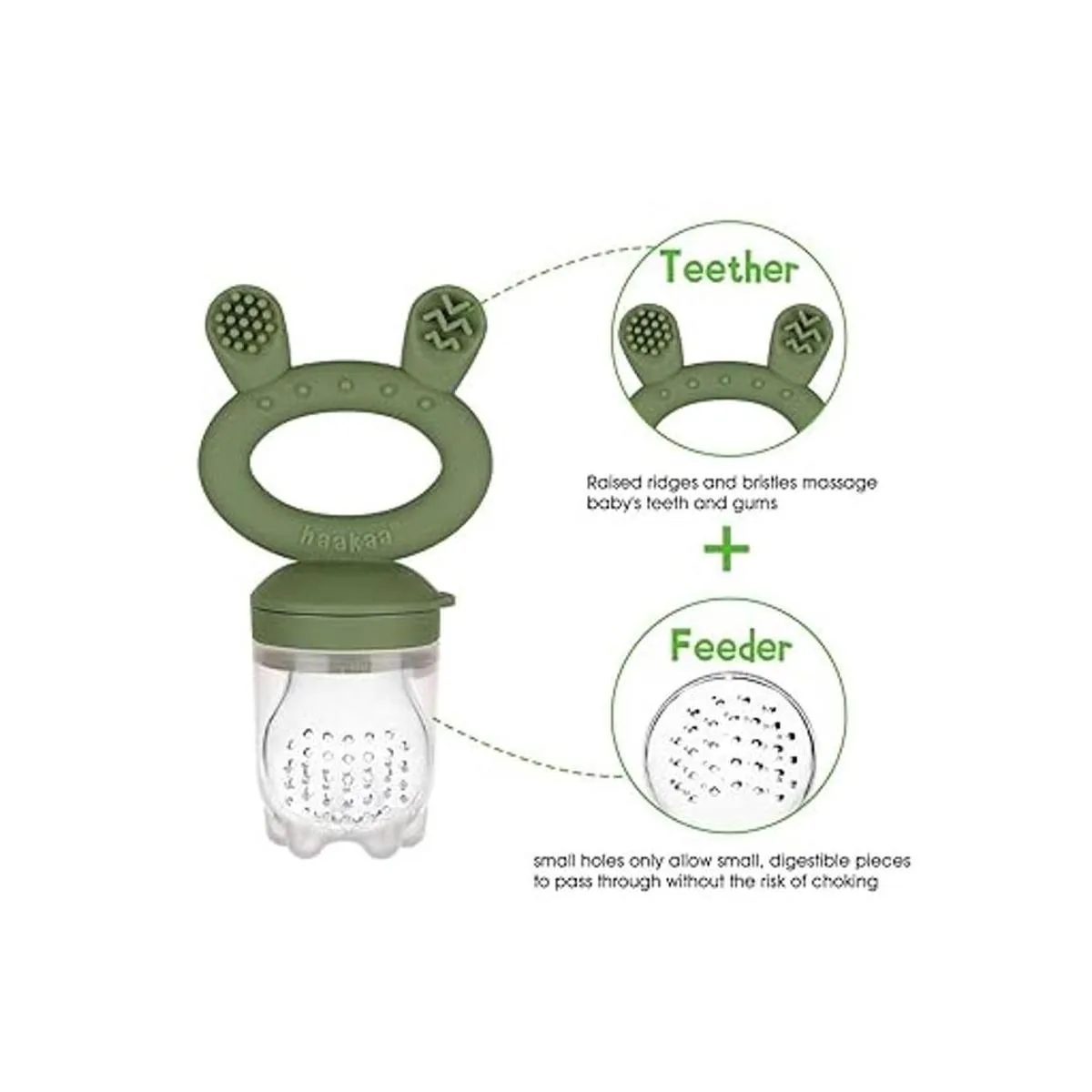 Haakaa Chupete de alimentación de frutas para bebés, juego de leche congelada, alimentador de silicona y mordedor para bebés autoalimentados de forma segura, sin BPA, juguete de alivio de la dentición verde oliva