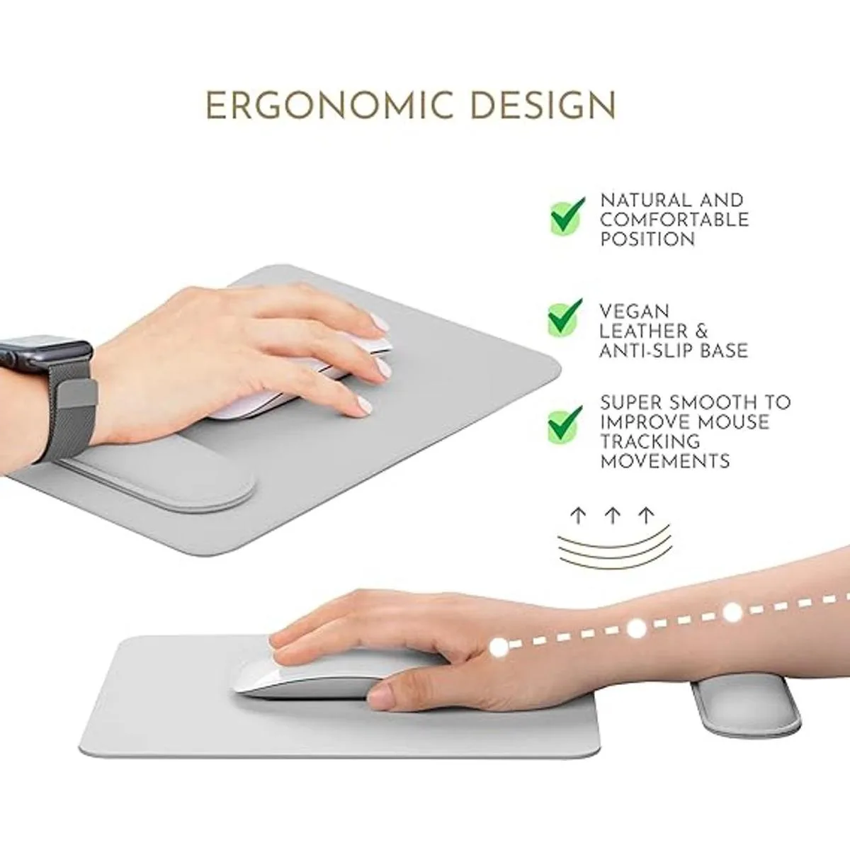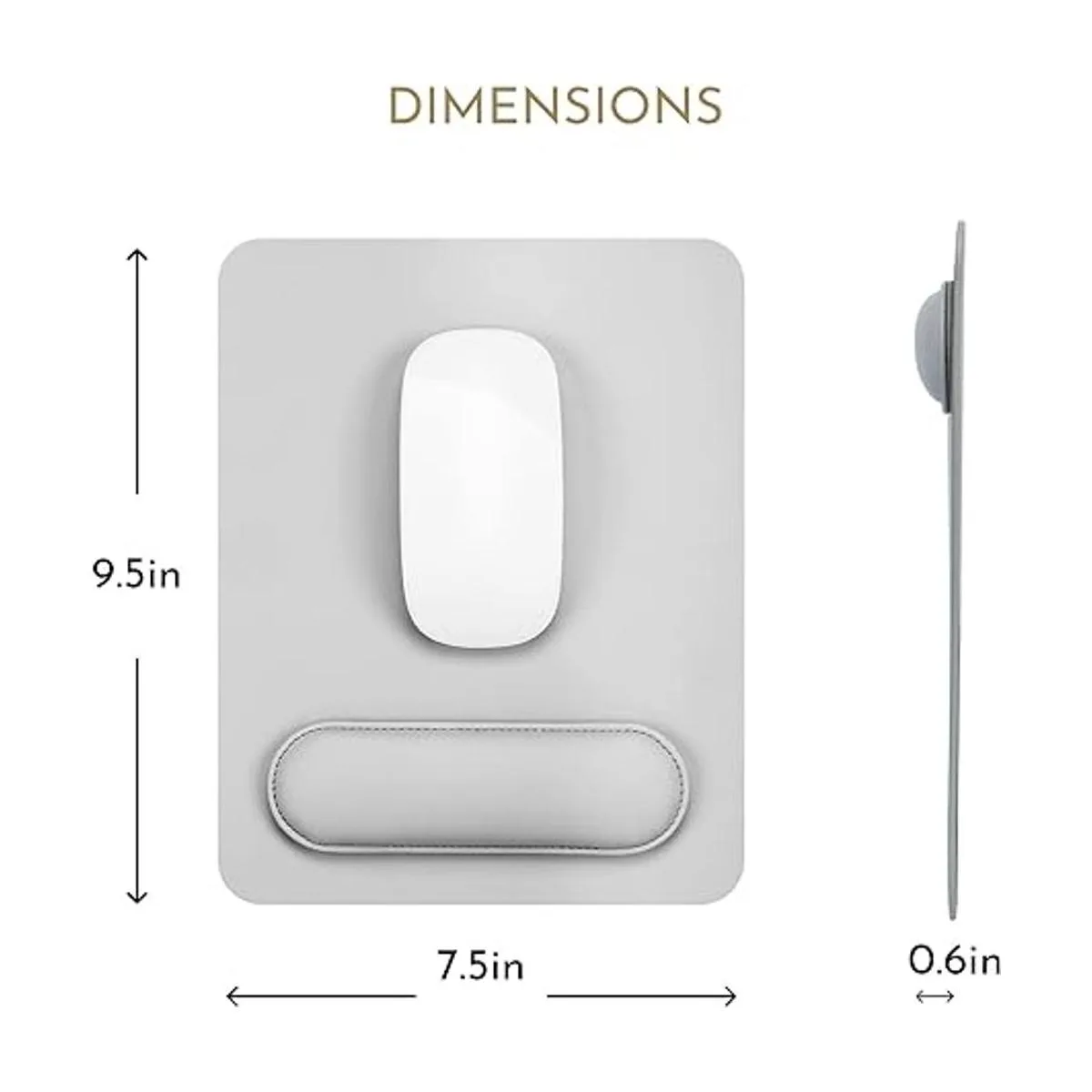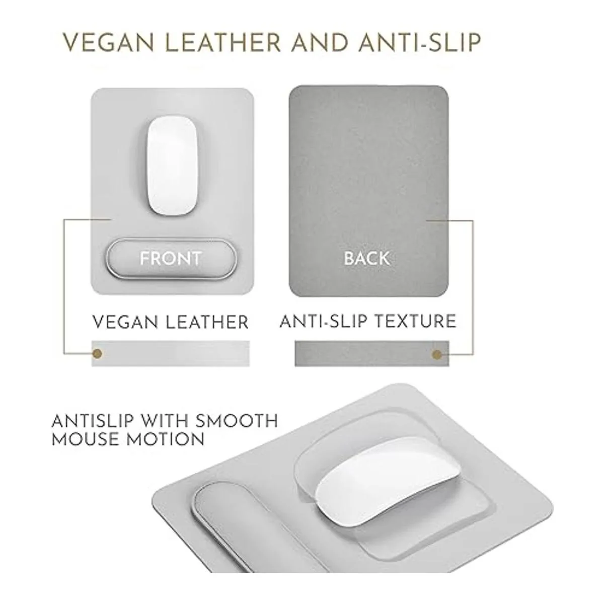 HABITU Colección de alfombrillas de mouse 2022 Alfombrilla de mouse gris de cuero vegano con soporte de muñeca y base antideslizante, alfombrilla ergonómica con reposamuñecas magnético extraíble, bonitos accesorios de escritorio de oficina para mujer