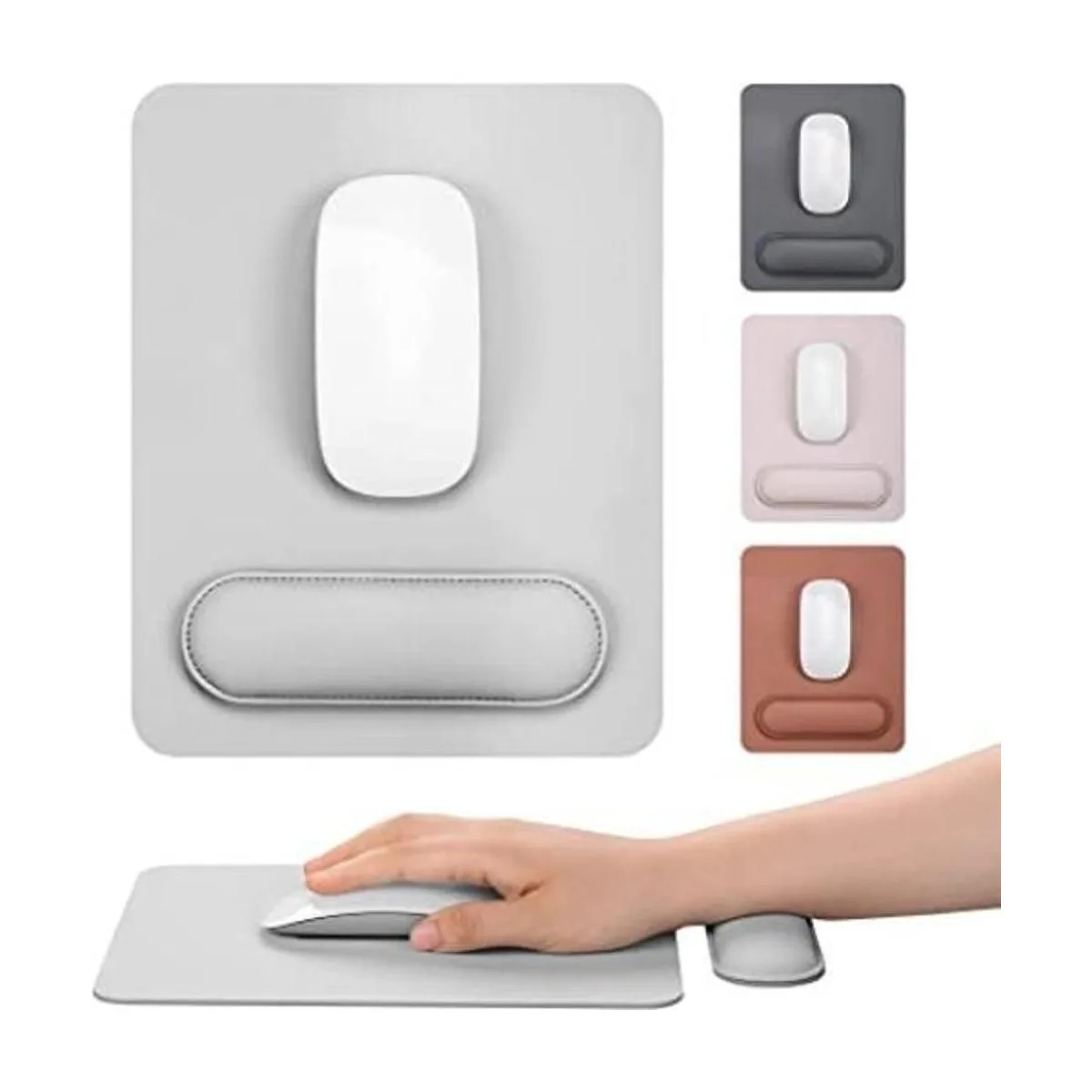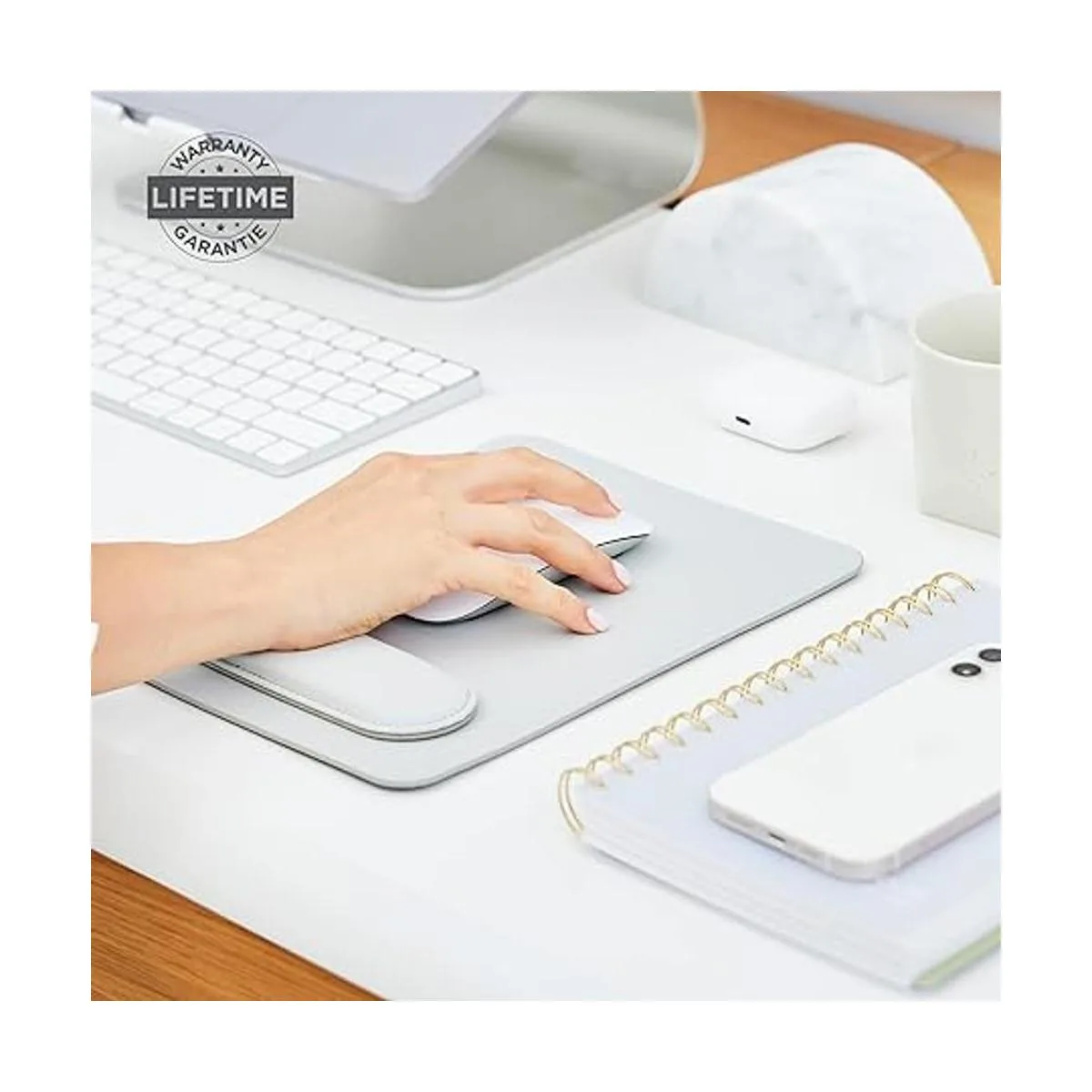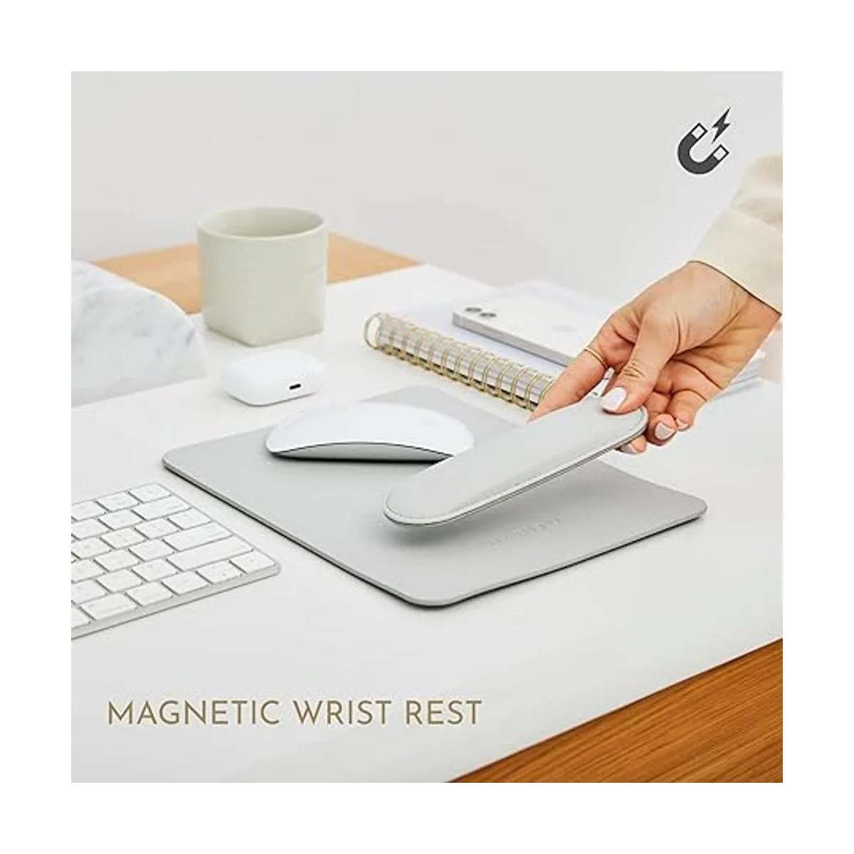 HABITU Colección de alfombrillas de mouse 2022 Alfombrilla de mouse gris de cuero vegano con soporte de muñeca y base antideslizante, alfombrilla ergonómica con reposamuñecas magnético extraíble, bonitos accesorios de escritorio de oficina para mujer