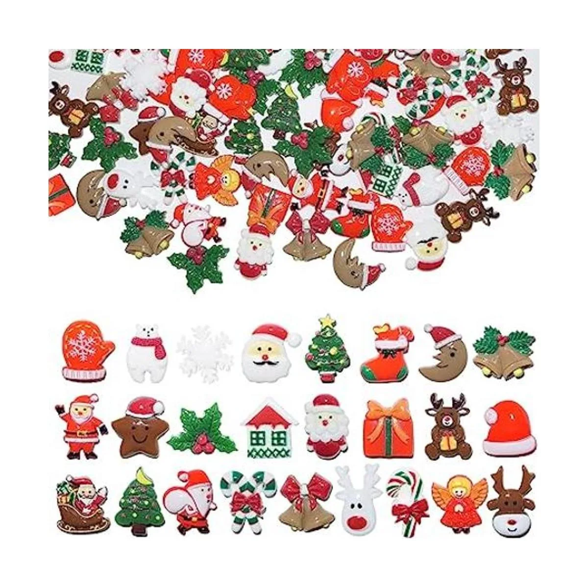 HADDIY Dijes de resina de Navidad para manualidades, 100 piezas de cuentas de slime de parte trasera plana, adornos en miniatura para adornos de Navidad, suministros de manualidades y mini decoraciones de Navidad