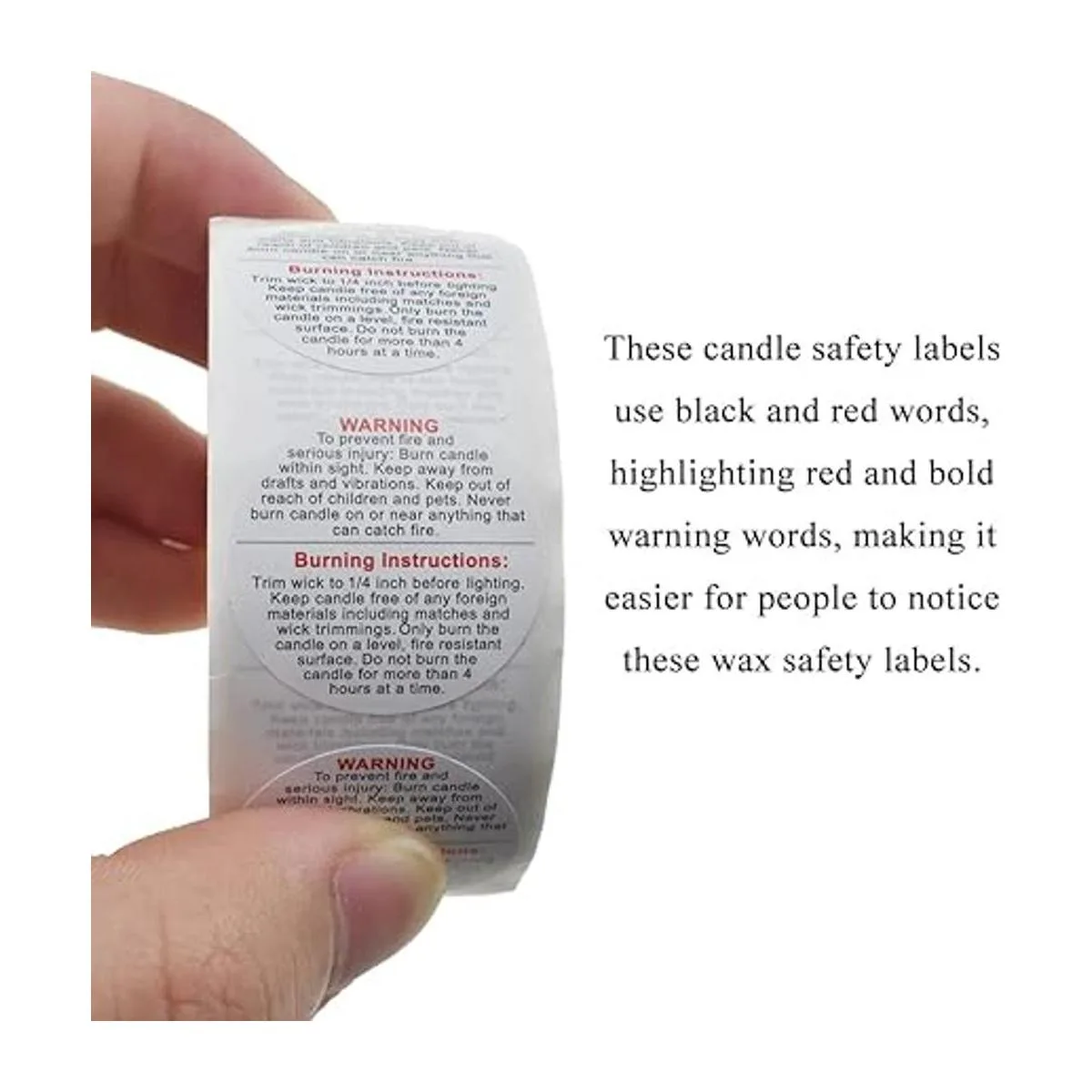 Diseño exquisito: estas etiquetas de seguridad para velas utilizan palabras negras y rojas, destacando palabras de advertencia rojas y atrevidas, por lo que es más fácil para las personas notar estas etiquetas de seguridad de cera. Están centrados en texto, el texto es claro, el tamaño de fuente es adecuado y se pueden leer sin barreras. También pueden hacer que tu vela se vea más profesional y tenga una textura más alta