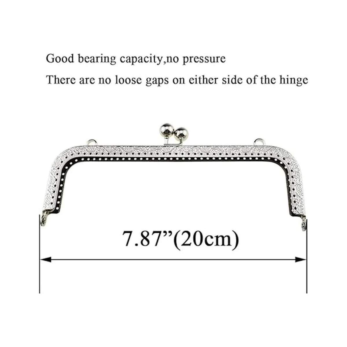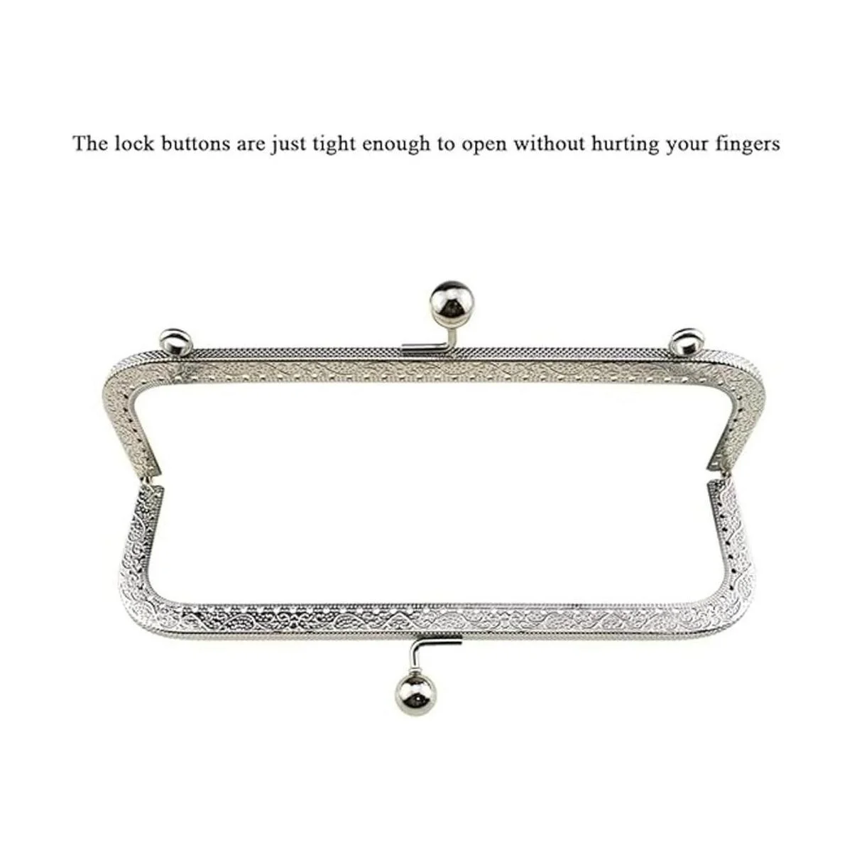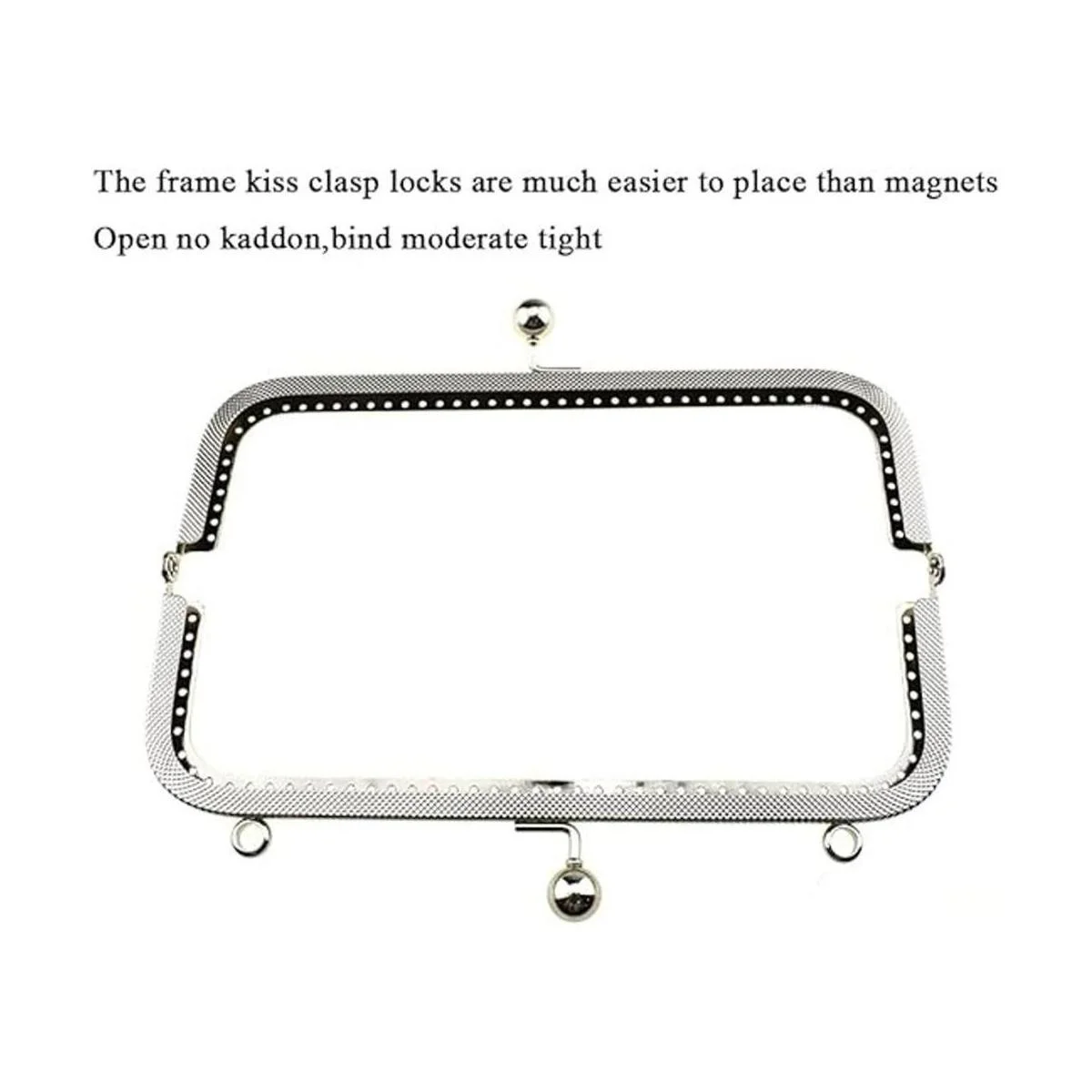 Hahiyo Bolso cuadrado con cierre de beso, cierre de marco, 7.9 in de diámetro, embrague rectangular de metal, clip de pestillo vintage, cierre suave, resistente, sin rasguños, espacio suelto para bricolaje, tela de ganchillo, monedas, bolsa de cuero, 2 unidades, color plateado