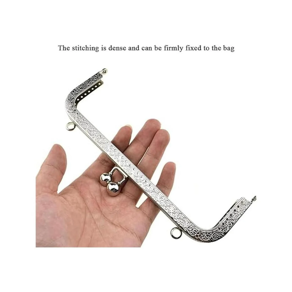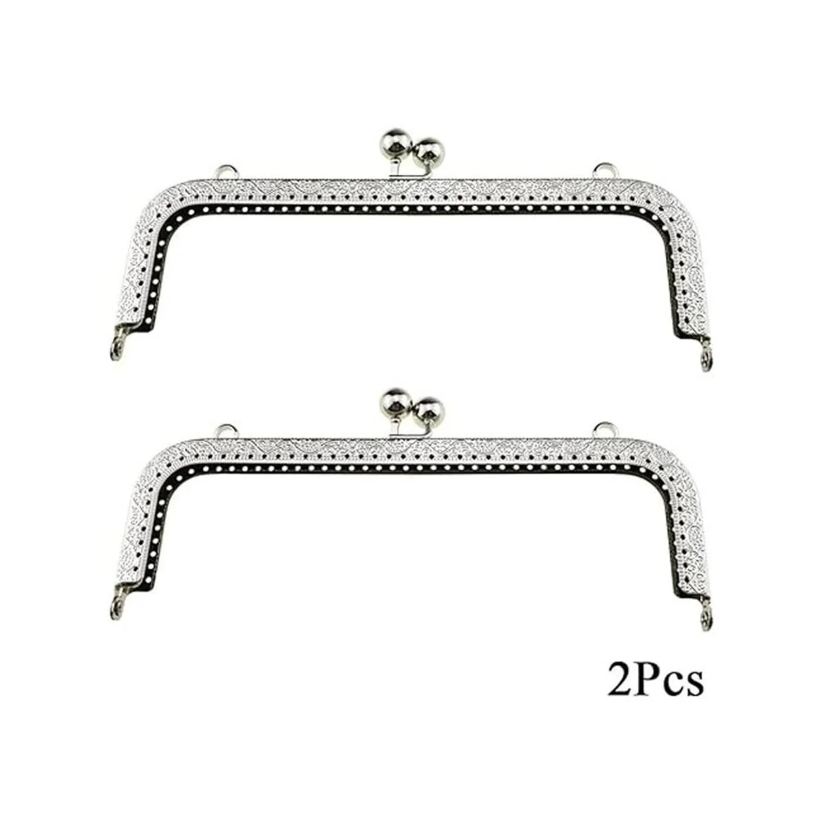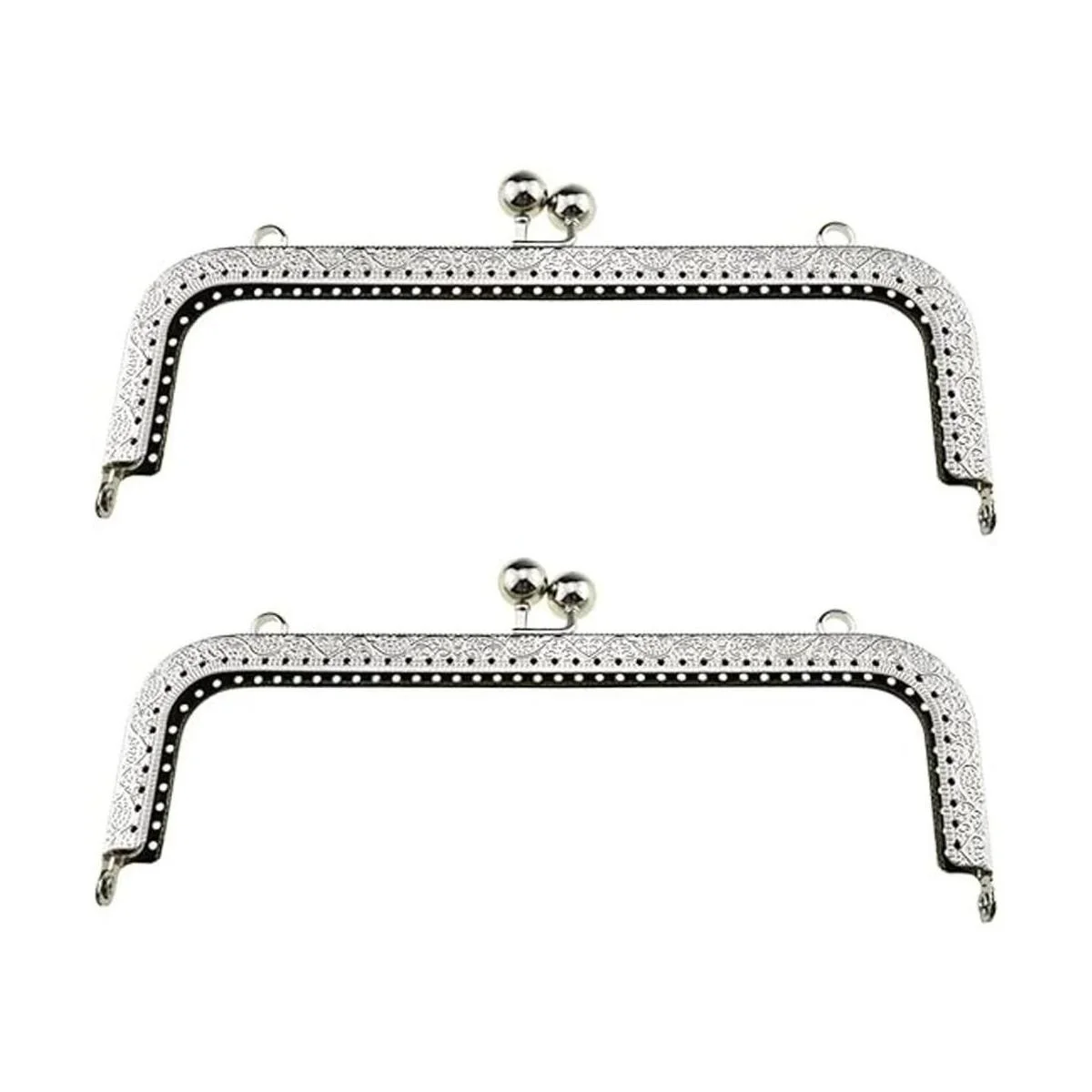 Hahiyo Bolso cuadrado con cierre de beso, cierre de marco, 7.9 in de diámetro, embrague rectangular de metal, clip de pestillo vintage, cierre suave, resistente, sin rasguños, espacio suelto para bricolaje, tela de ganchillo, monedas, bolsa de cuero, 2 unidades, color plateado