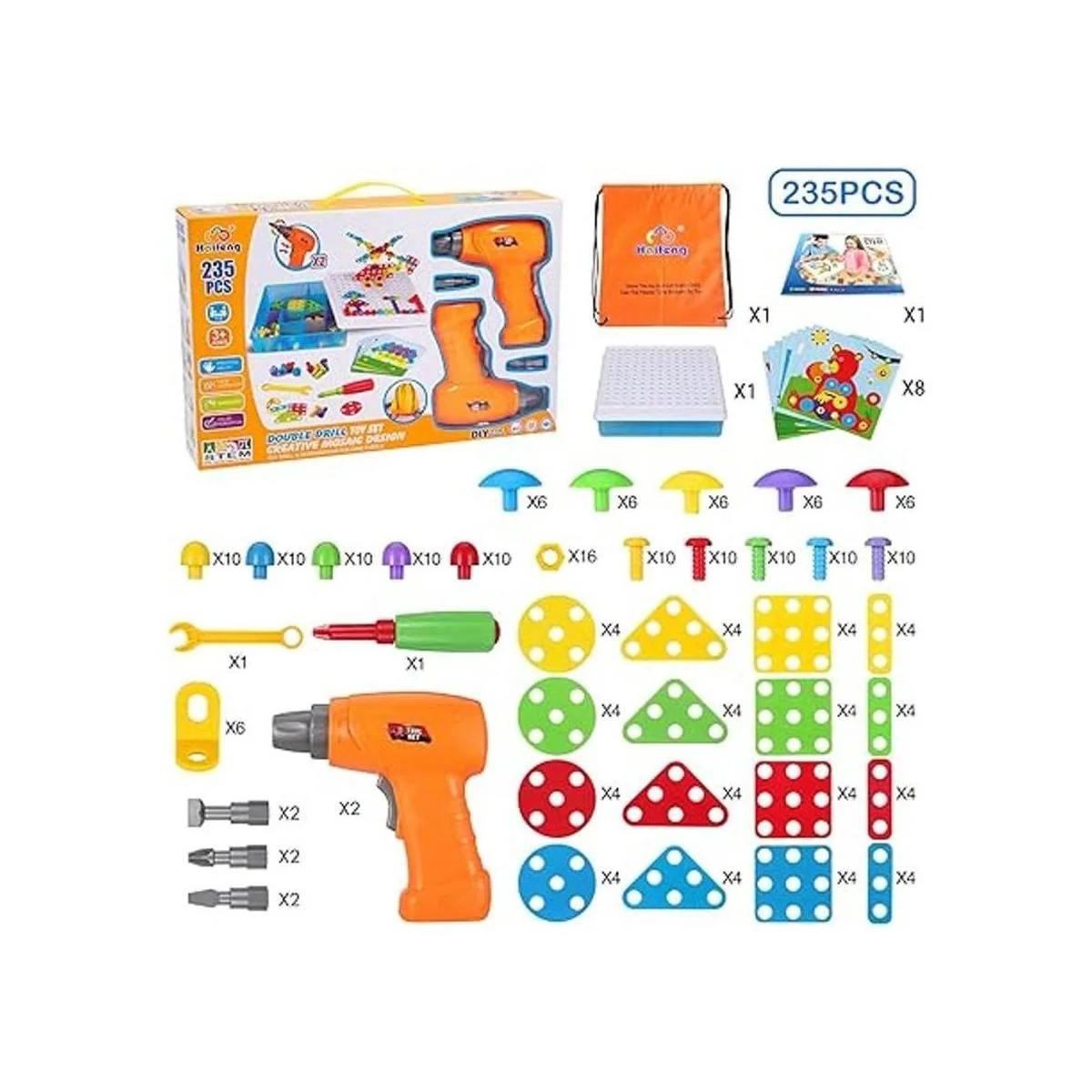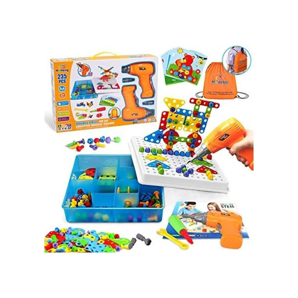 Haifeng Juego de 235 piezas de herramientas de construcción de taladro y destornillador, juego de taladro de mosaico creativo para niños, juego de actividades STEM para niños de 3, 4, 5, 6, 7, 8 años